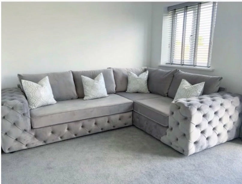 Luxury bespoke Corner Sofa, upholstered in the finest luxury fabrics, and hand manufactured in the UK, using high quality graded foam
