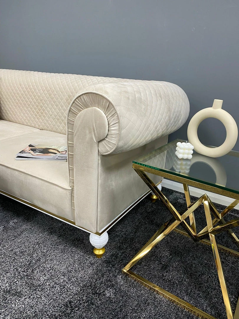 Give your a living room a royal feel with our Balmoral sofa. With wooden detailing and a modern diamond shaped backrest the Balmoral sofa is a statement piece.