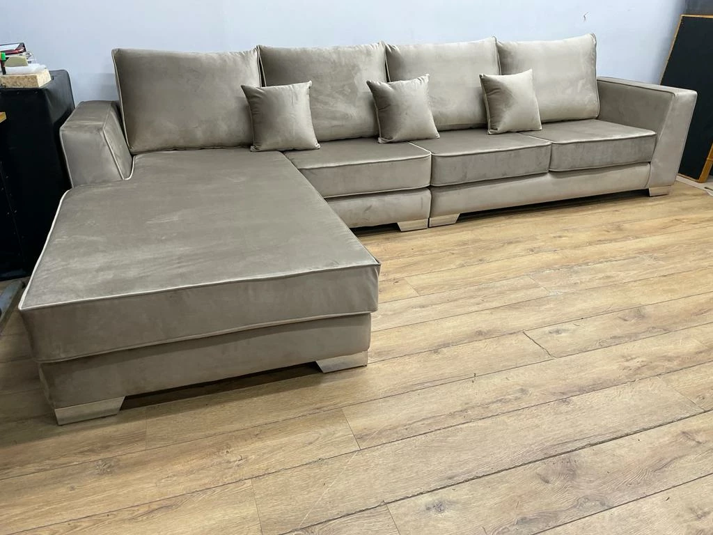 Luxury bespoke Corner Sofa, upholstered in the finest luxury fabrics, and hand manufactured in the UK, using high quality graded foam