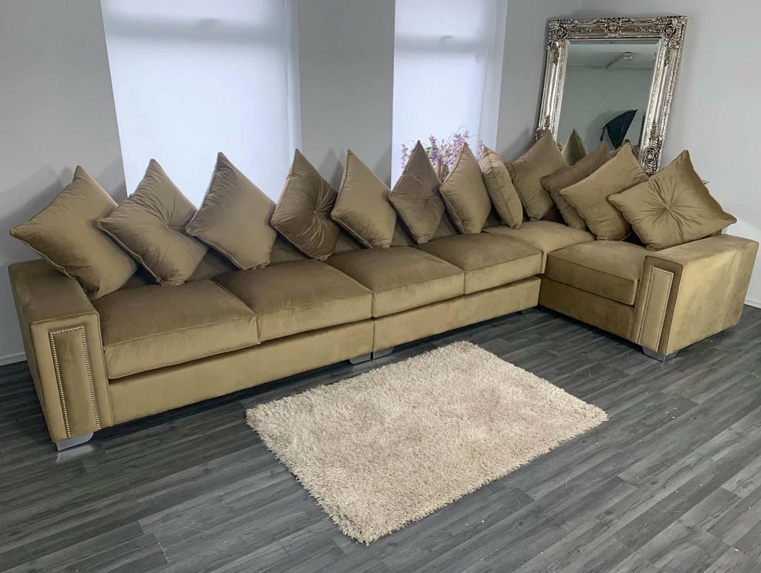 Luxury bespoke Corner Sofa, upholstered in the finest luxury fabrics, and hand manufactured in the UK, using high quality graded foam