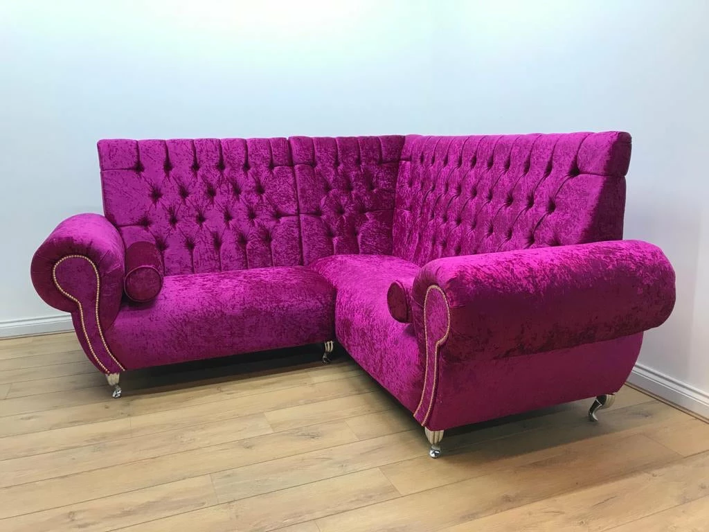 Bench in the picture is 7ft x 7ft in hot pink crushed velvet made to customers requirements