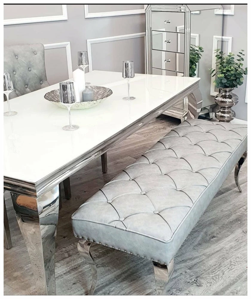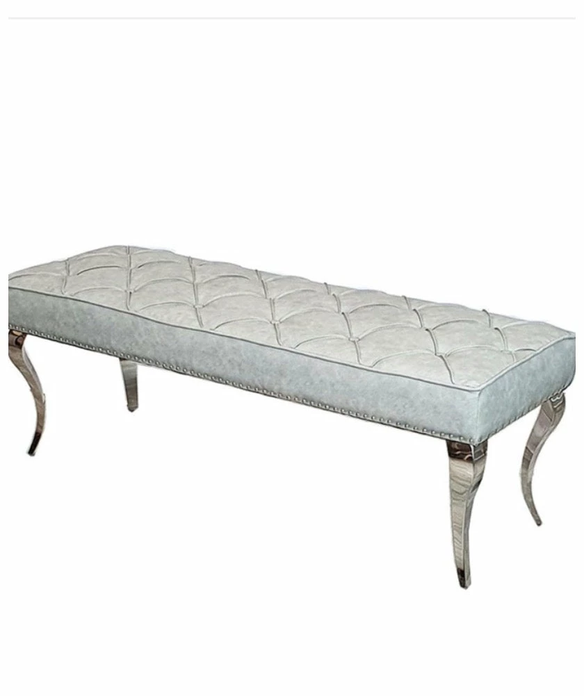 House Of Bling Furniture Boutique Cambridge Dining Bench In Silver Grey Leather