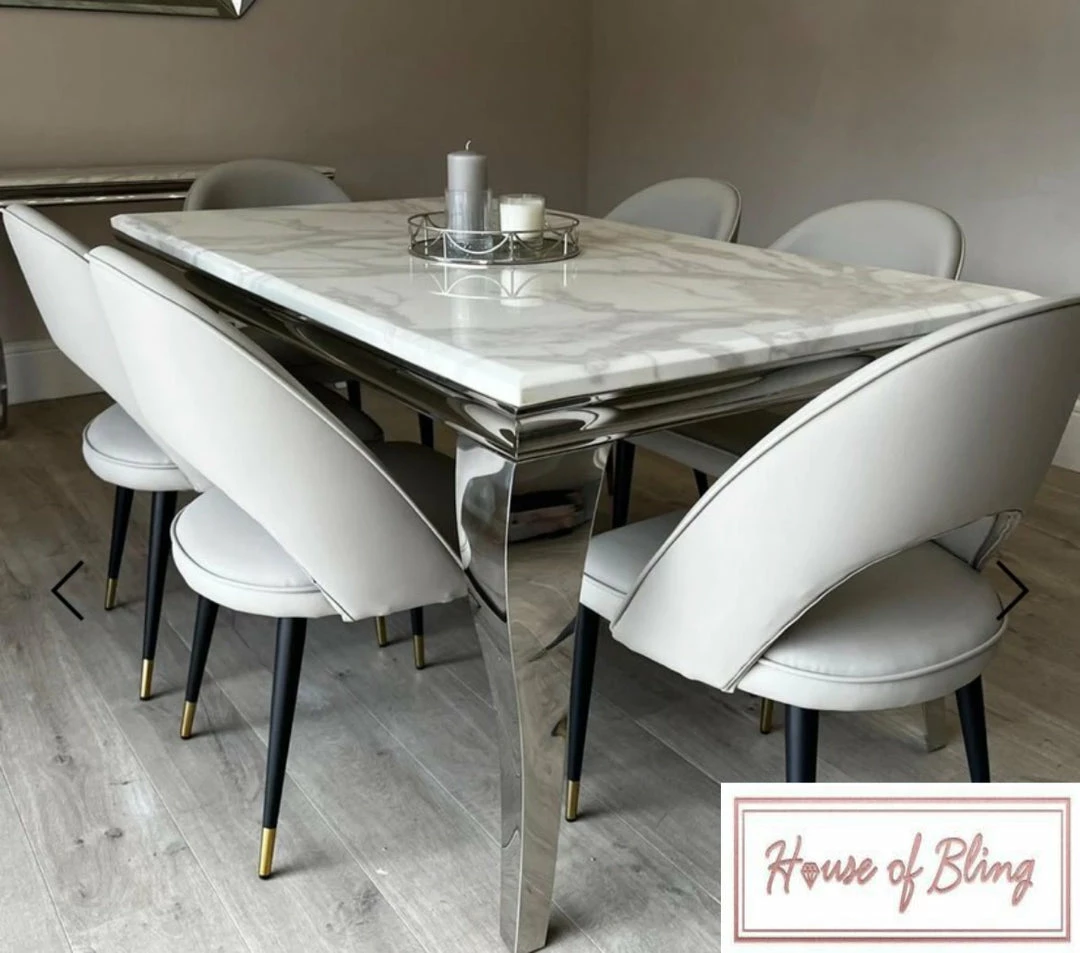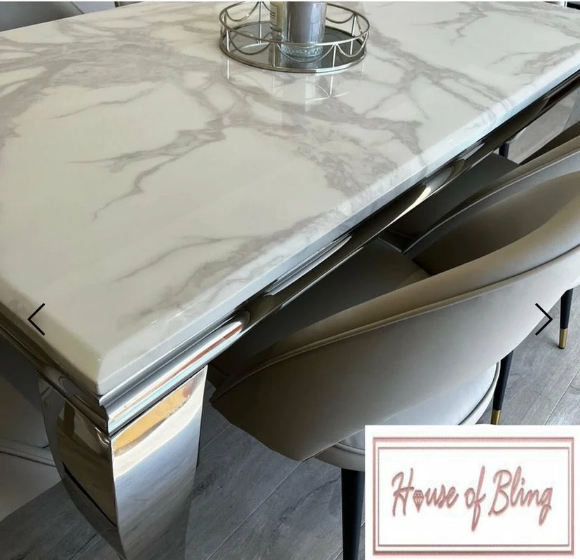 Cambridge white marble table with chair package, our marble table are available in different marble colour tops and selection of different chair packages available, please contact us with your requirements