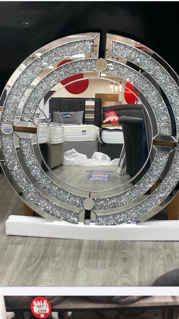 House Of Bling Furniture Boutique Crushed Diamond Circular Mirror Mirrors