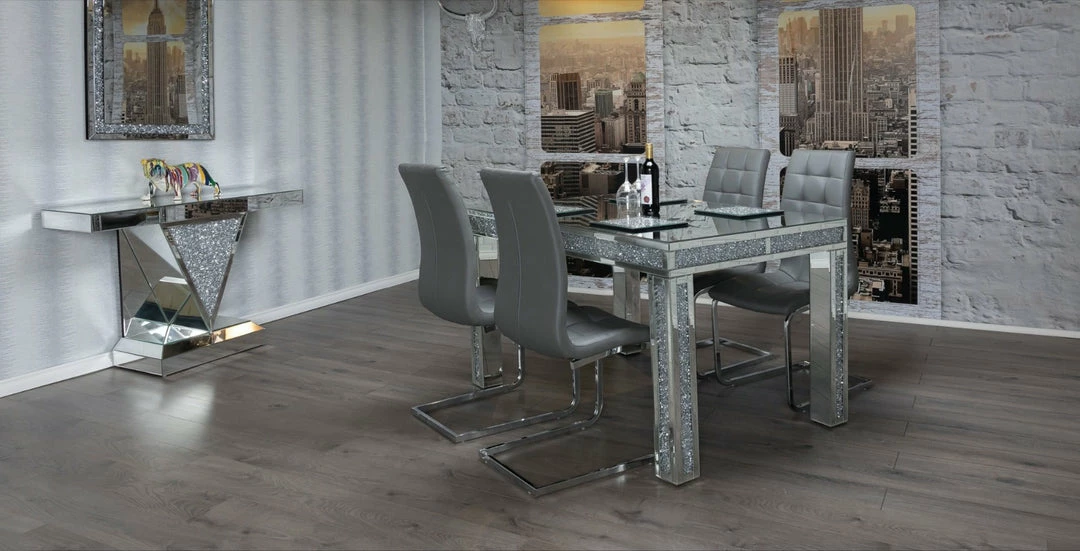 House Of Bling Furniture Boutique Crushed Diamond Table With Faux Leather Grey Chairs Dining Tables And Chairs Sets