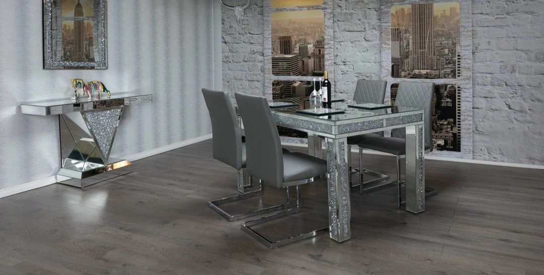 House Of Bling Furniture Boutique Crushed Diamond Table With Faux Leather Grey Chairs