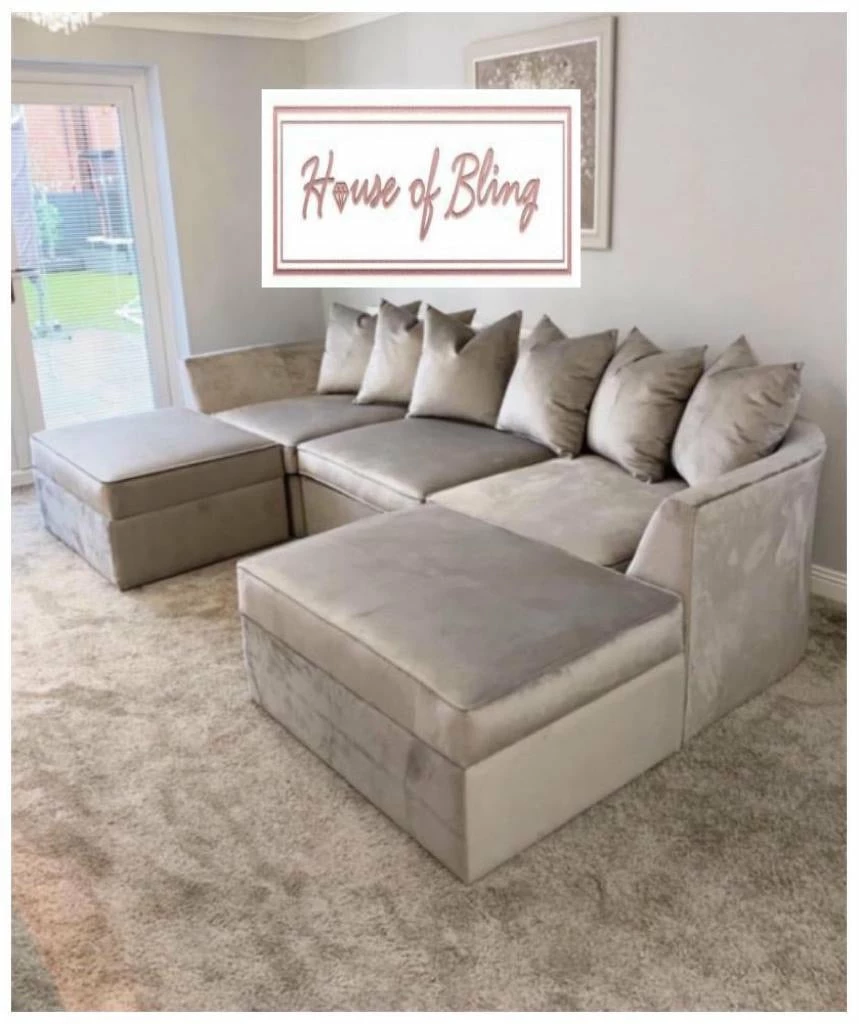 Luxury bespoke U shape sofa, upholstered in the finest luxury fabrics, and hand manufactured in the UK, using high quality graded foam