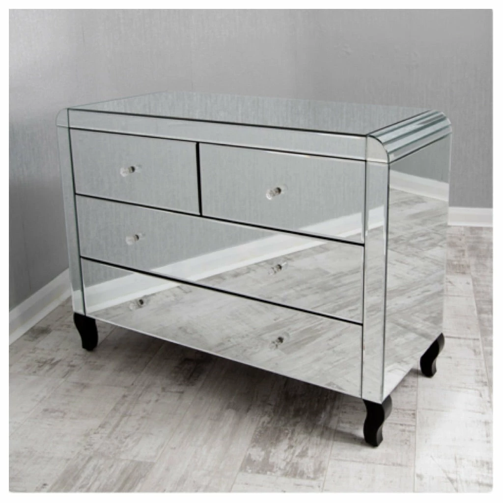 Plain Mirrored Chest of 4 drawers