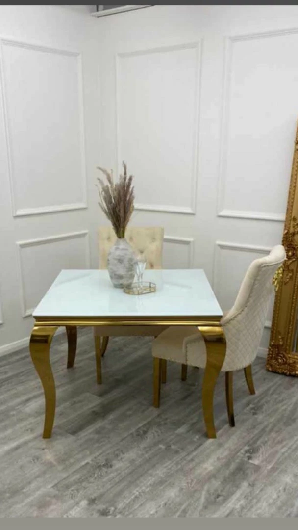 House Of Bling Furniture Boutique Devon Table In Gold With 4 Cream Chairs Dining Tables And Chairs Sets
