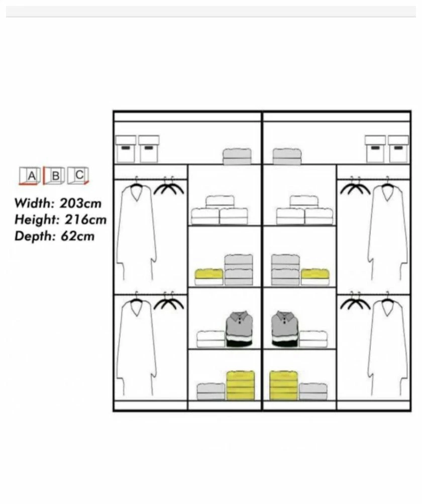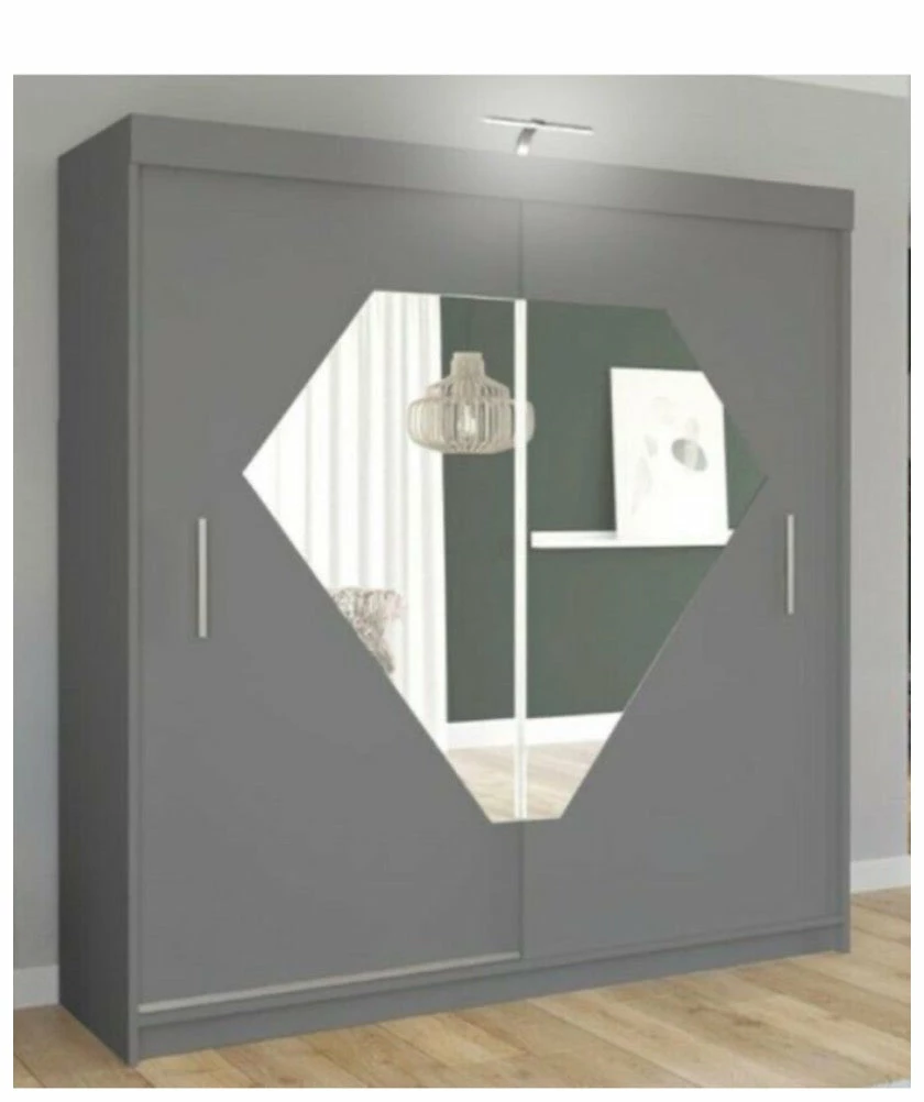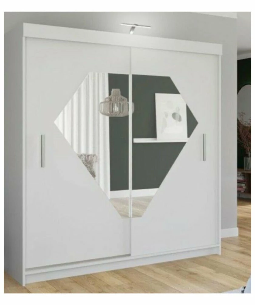 TheSliding Door Wardrobe offers a stylish and modern design suitable for any type of bedroom. The wardobe provides plenty of storage space with diamond-shaped mirrored sliding doors and multiple shelves and hanging space for your clothes. This wardrobe is very versatile and is available in 2 sizes and 3 colours and is the perfect option for any requirement.