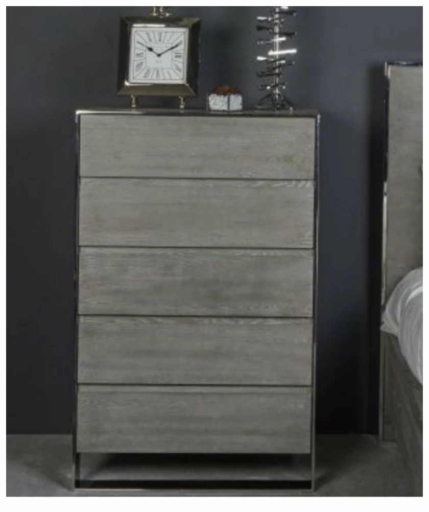 With a distinctive floating design, this sturdy natural Elmwood Diego 5 Drawer Tall Cabinet will look incredibly stylish in any home. Featuring a stainless steel frame.