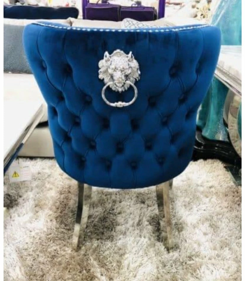 SKU: house-of-bling-furniture-boutique-6594318499891 Categories: Dining Chairs, Dining Room Tags: Chair, Chairs, Dining chairs, Grey chairs, Knocked chairs, Lion knock chair, Valentino chairs, Velvet chairs