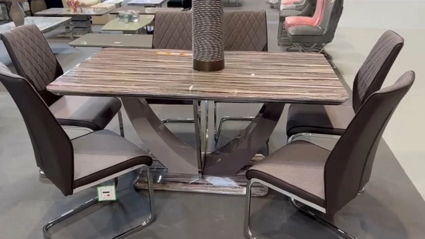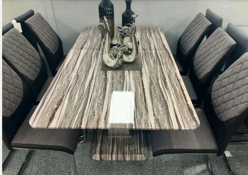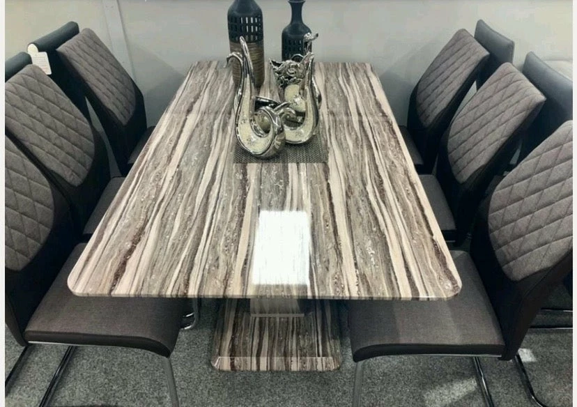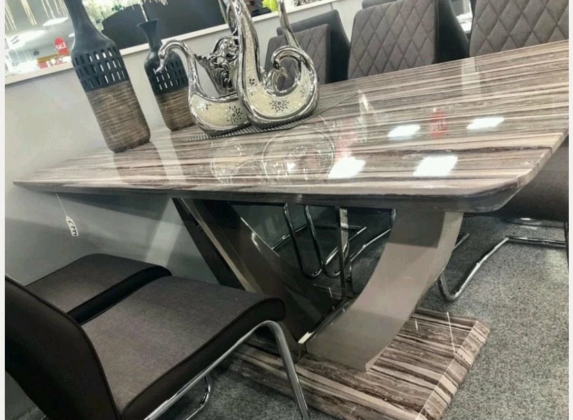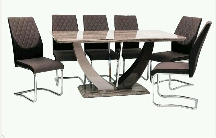 160 x 90 x 76 (cm) High gloss marble inspired dining table complete with chairs