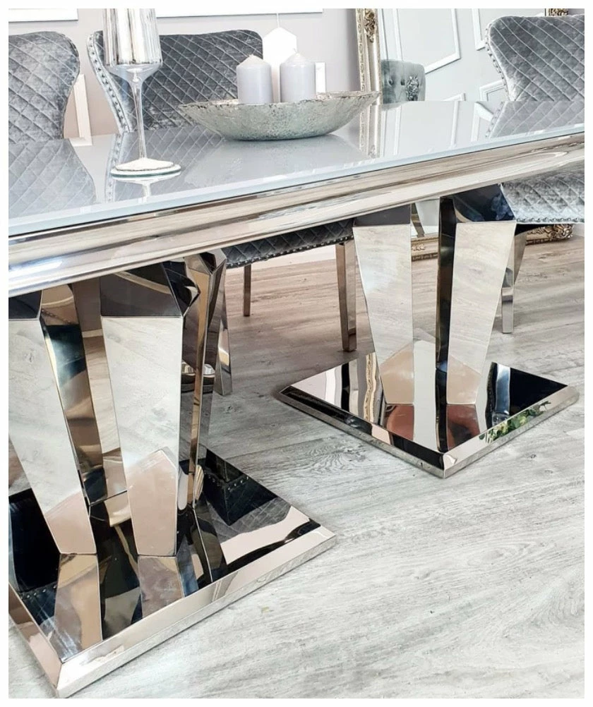 House Of Bling Furniture Boutique Dining Tables And Chairs Sets Athens Table Grey Glass Top 1.4 Meter Table