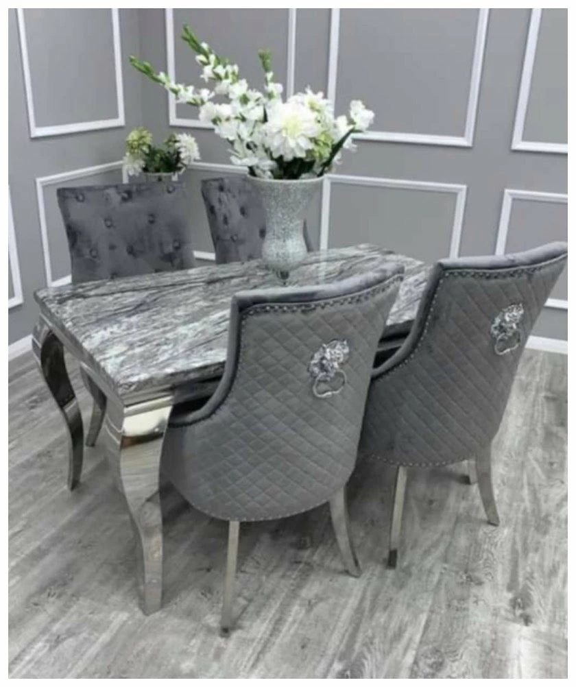 Dark grey marble table 1.3 meters with 4 lion knock chairs