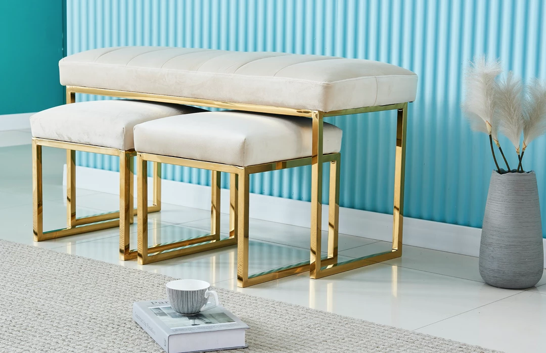 These incredible space saving bench and stool set is better than any “emergency chairs” during a family dinner.