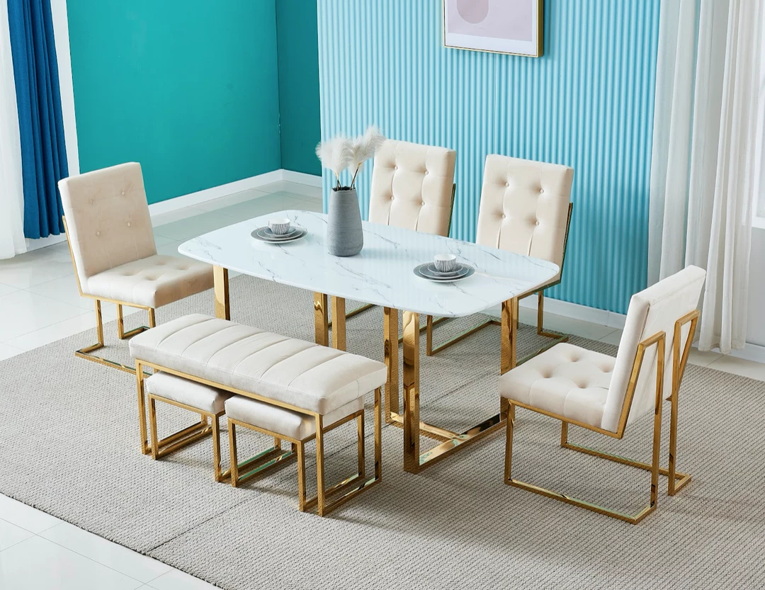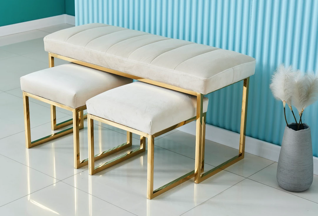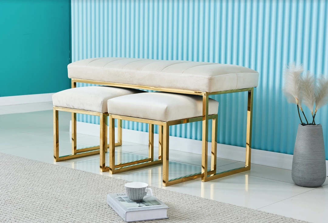 These incredible space saving bench and stool set is better than any “emergency chairs” during a family dinner.