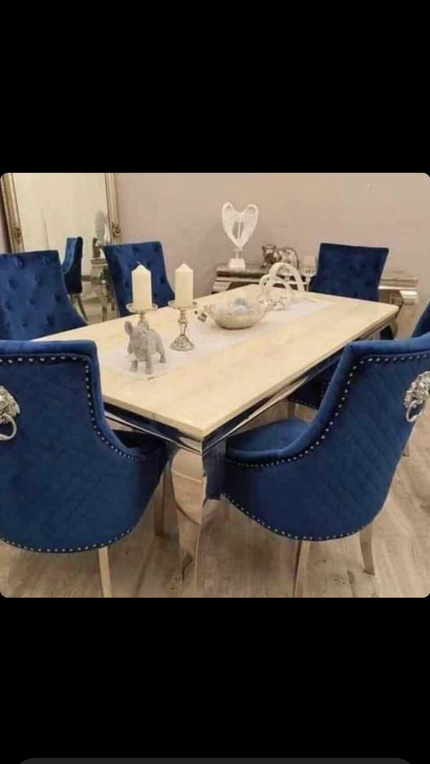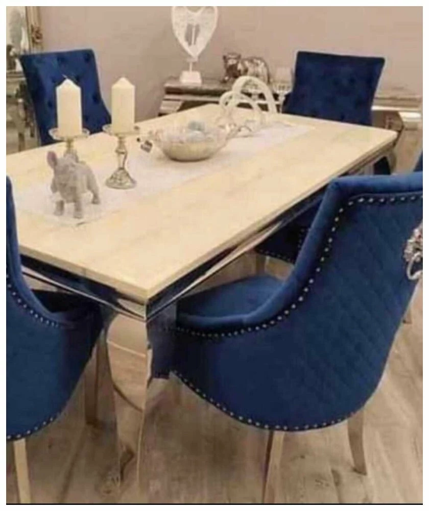 complete with 4 lion knock blue luxury velvet chairs