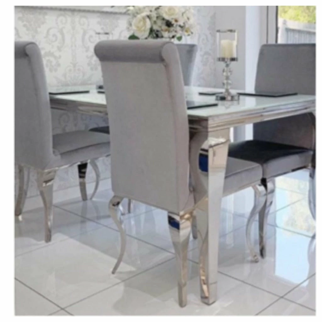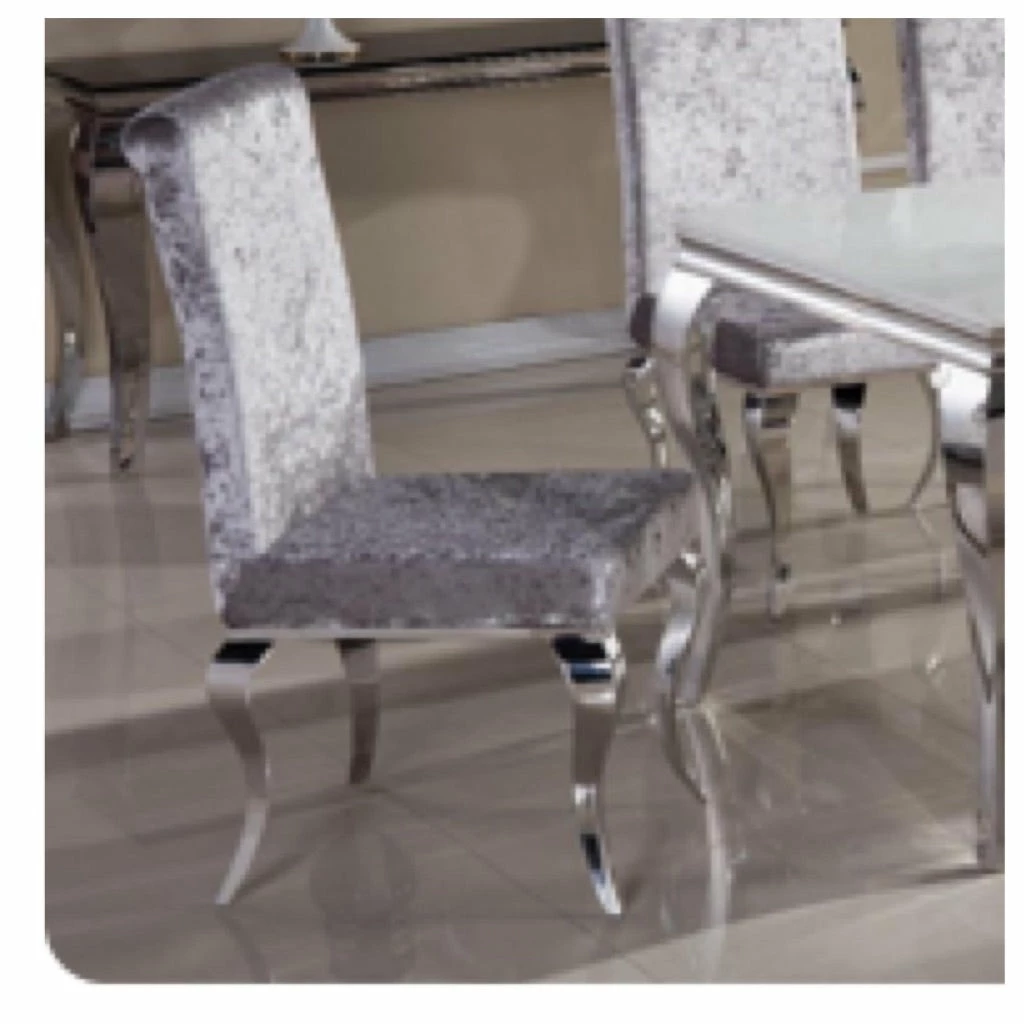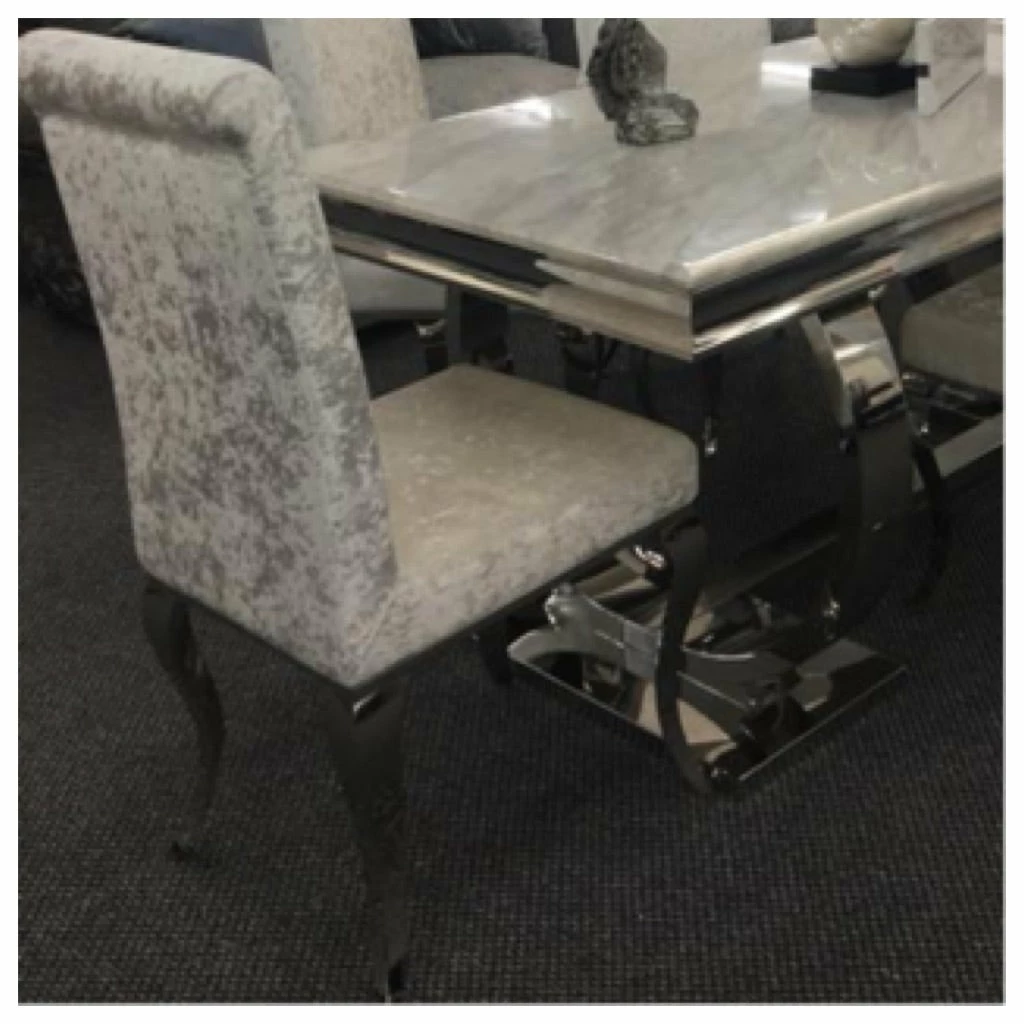 This package includes Oxford marble table in your choice of colour with 4 Paris chairs in either silver crushed, black velvet, cream velvet or grey velvet