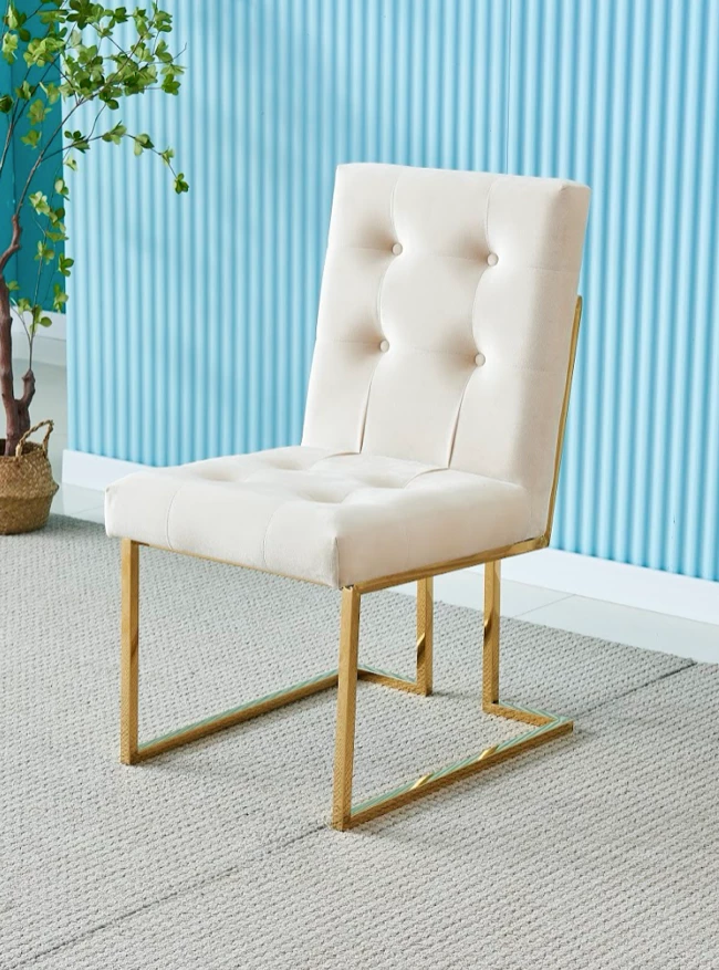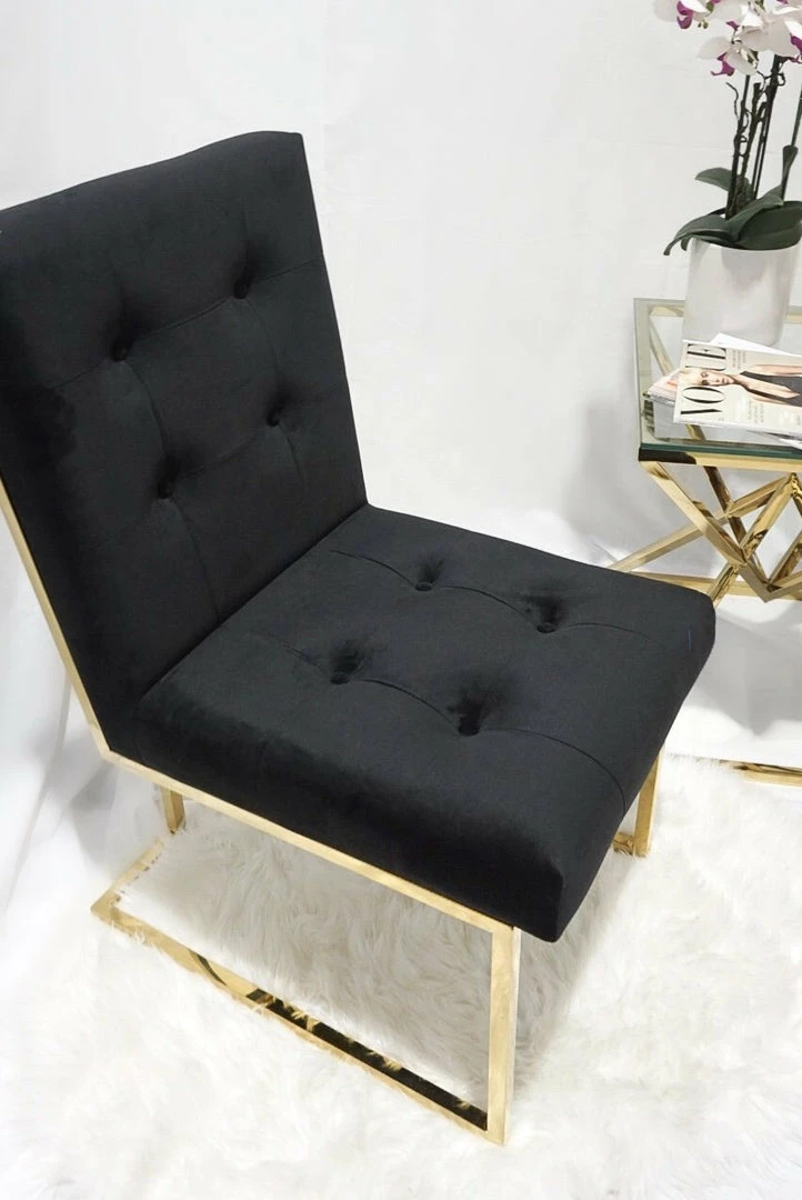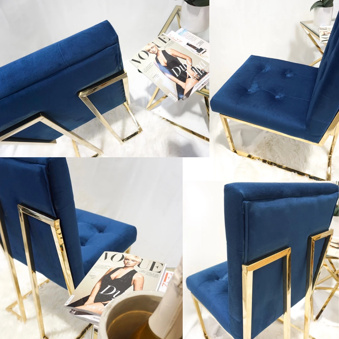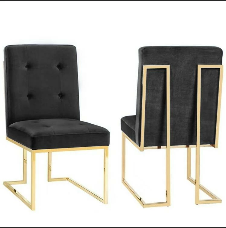 A pair of modern Doha collection luxury dining chair with gold polished iron legs.
