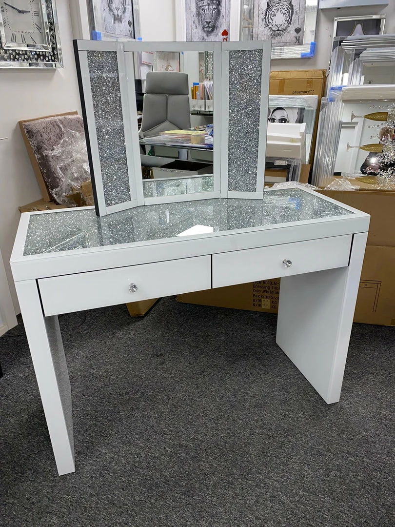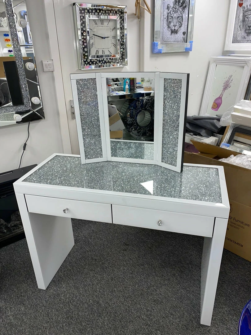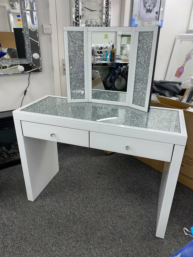 House Of Bling Furniture Boutique Dressing Tables White 2 Drawer Crushed Diamond Dressing Table