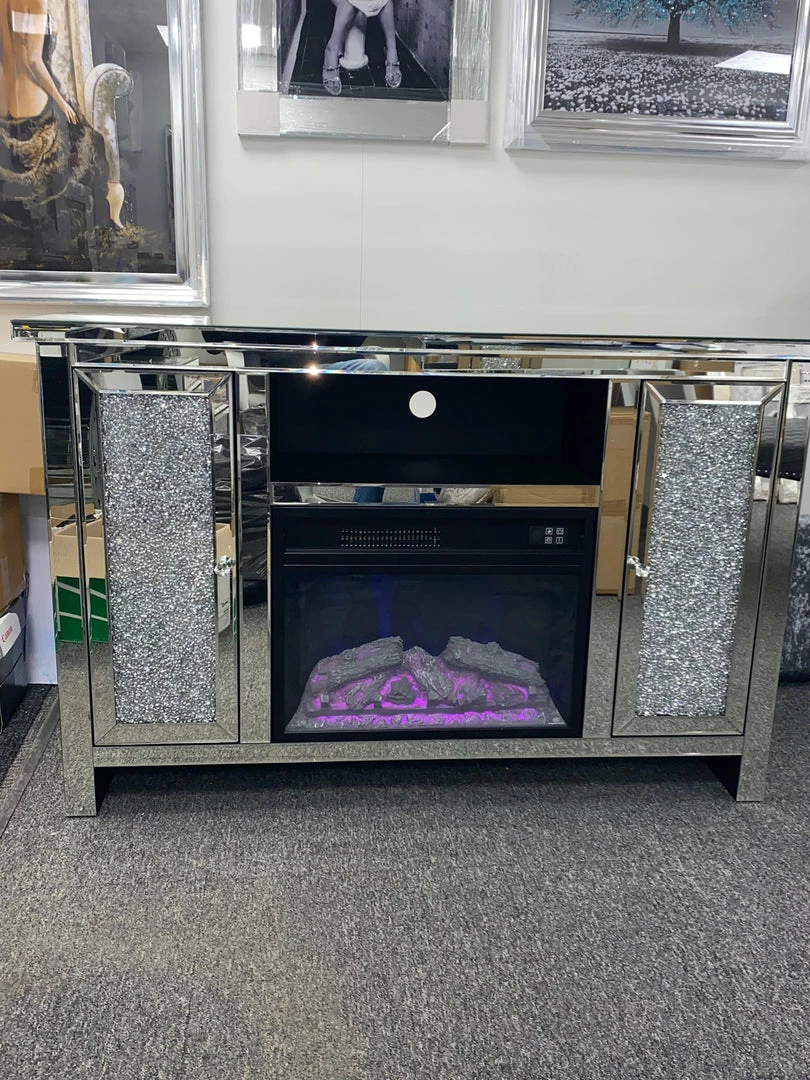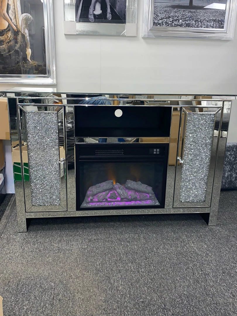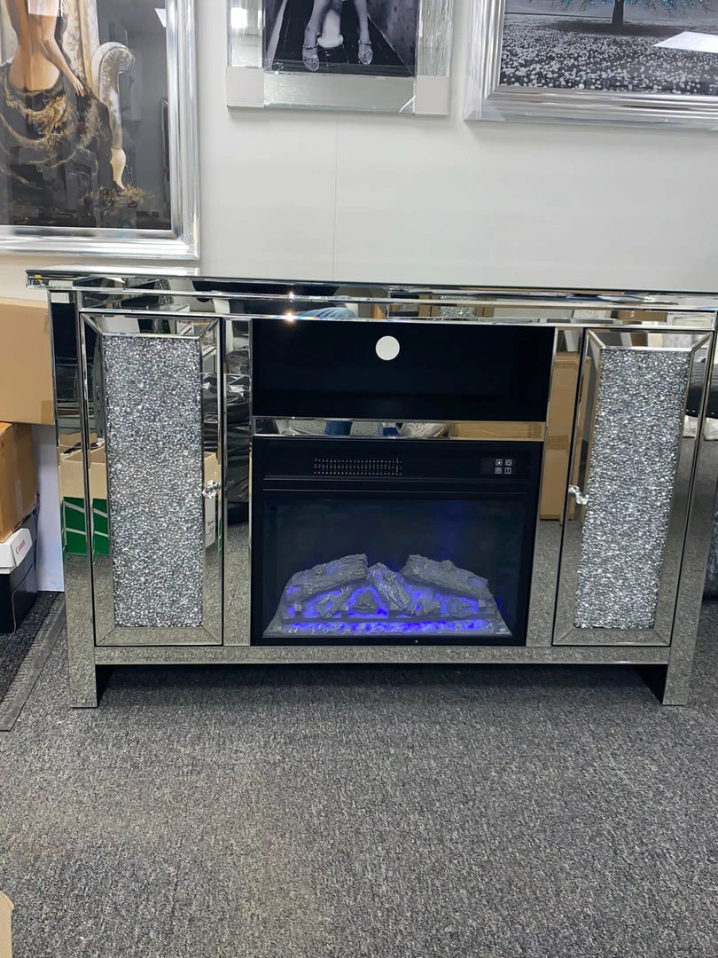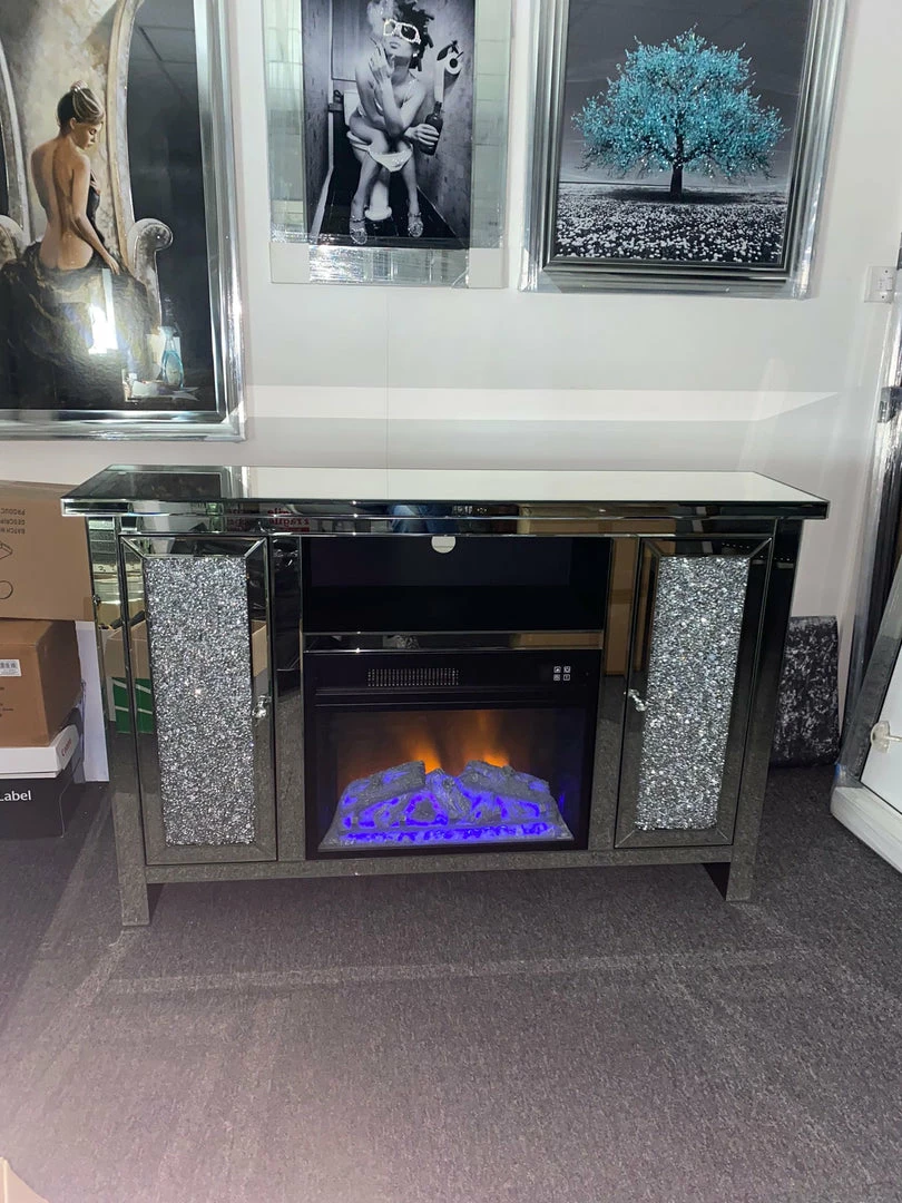 Complete with remote control charging LED electric fire crushed diamond sideboard cabinet