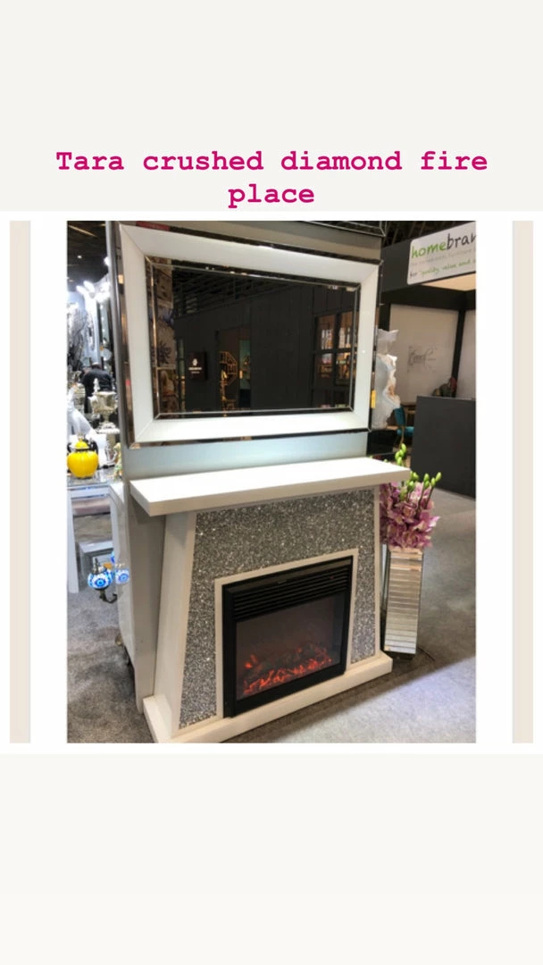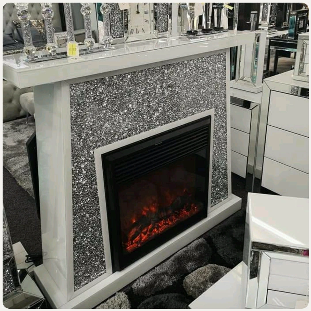 white gloss fire place with crushed diamond and electric fire place complete with surround