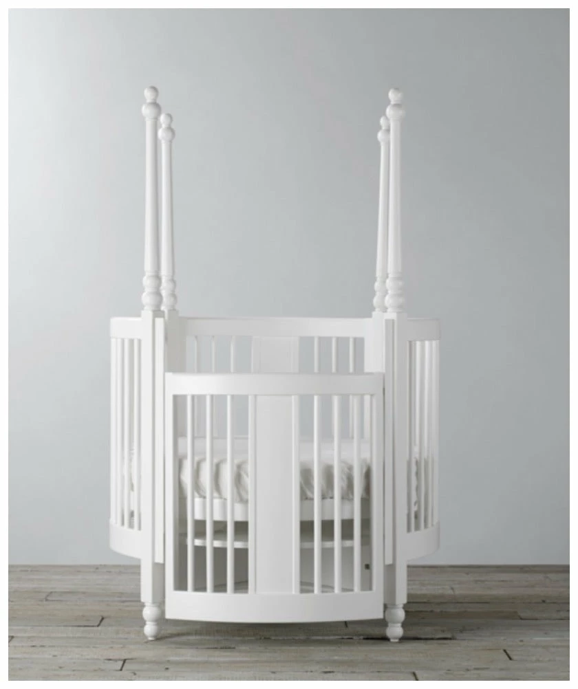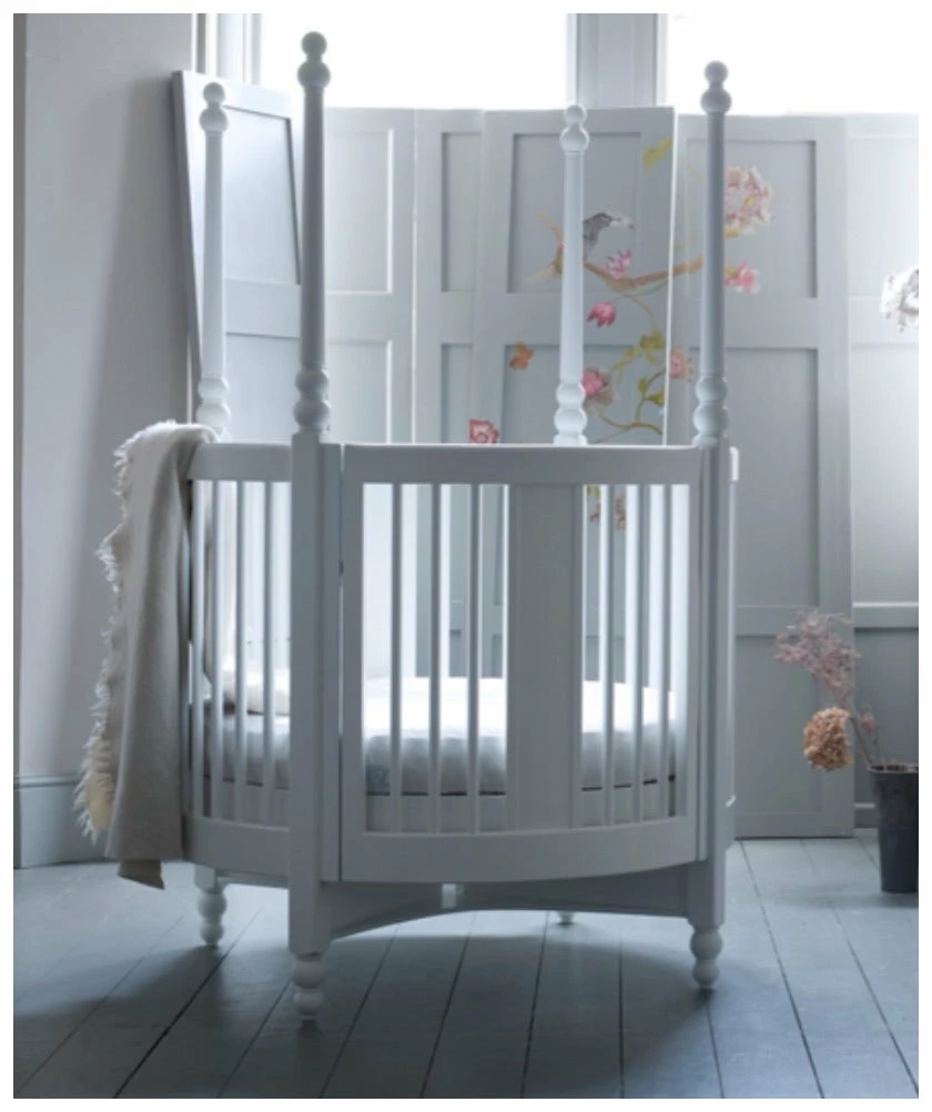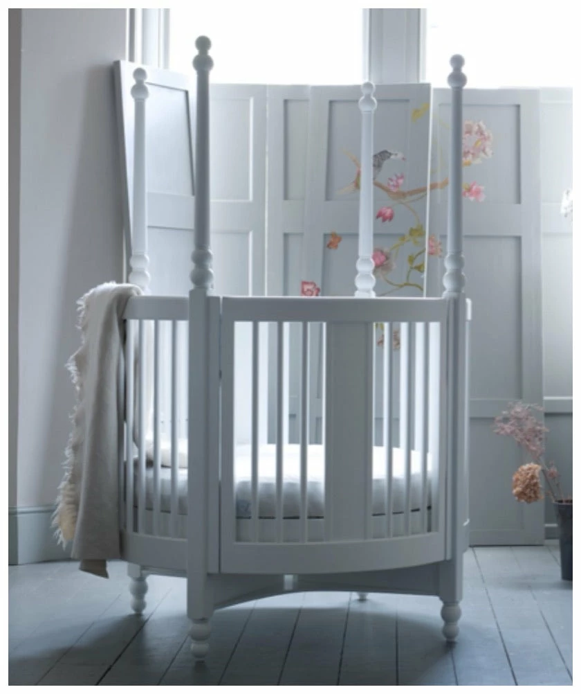 a touch of stately-home grandeur to your nursery with the Orpheus round cot. With all the elegance and sophistication of a four-poster bed, the Orpheus cot blends superb design with unbeatable safety features. Whether it’s looking stylish in the corner of the nursery or used as a dramatic centre-piece, this circular cot has all the makings of a future design classic. Concealed hardware operates the cot gate, and adjustable, secure mattress-height positions enable the bed to grow as your child becomes a toddler. Beautifully finished in a durable child-safe lacquer.