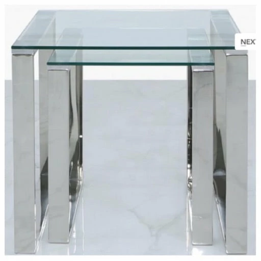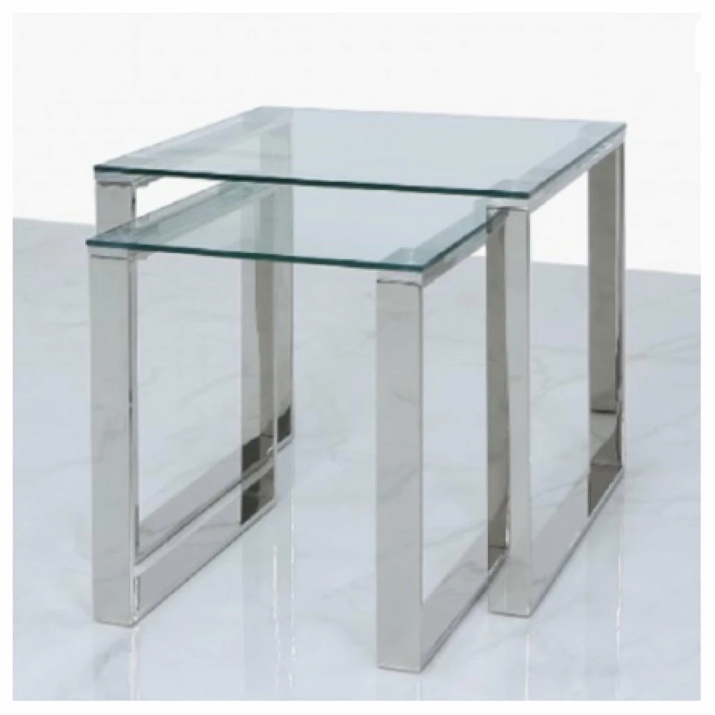 Steel And Clear Glass Nest Of 2 End Tables