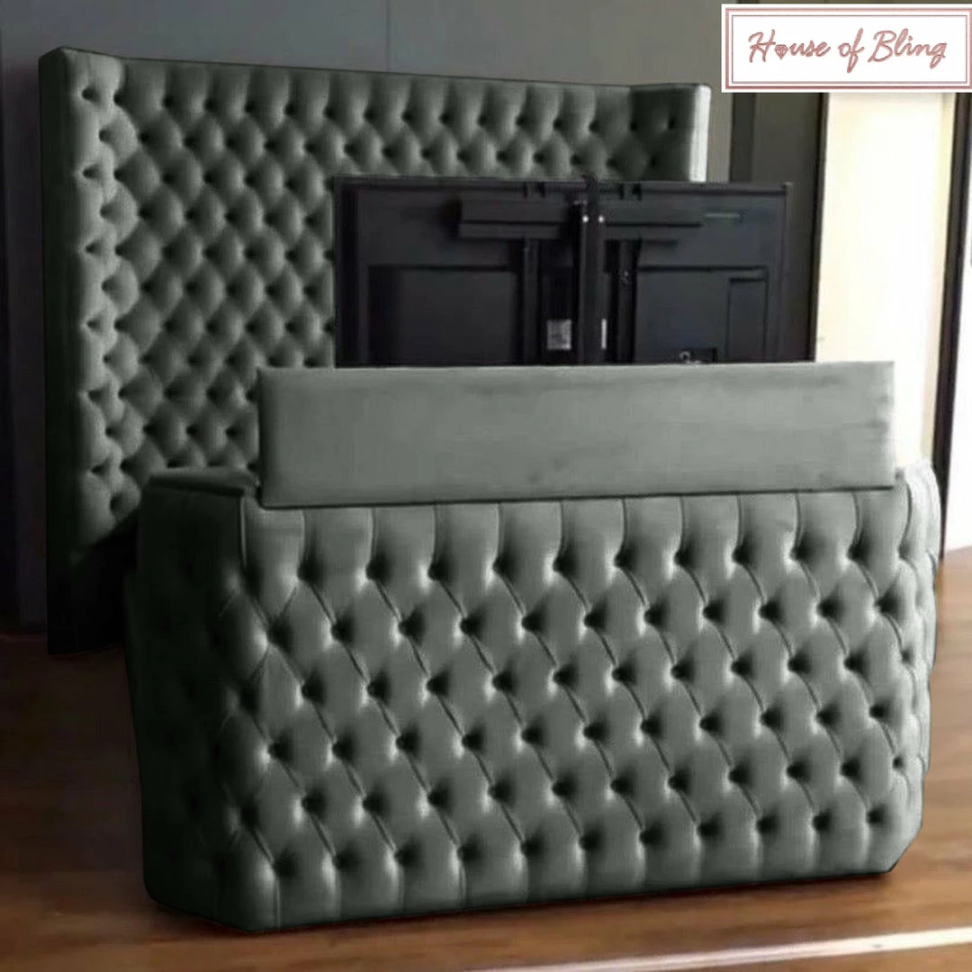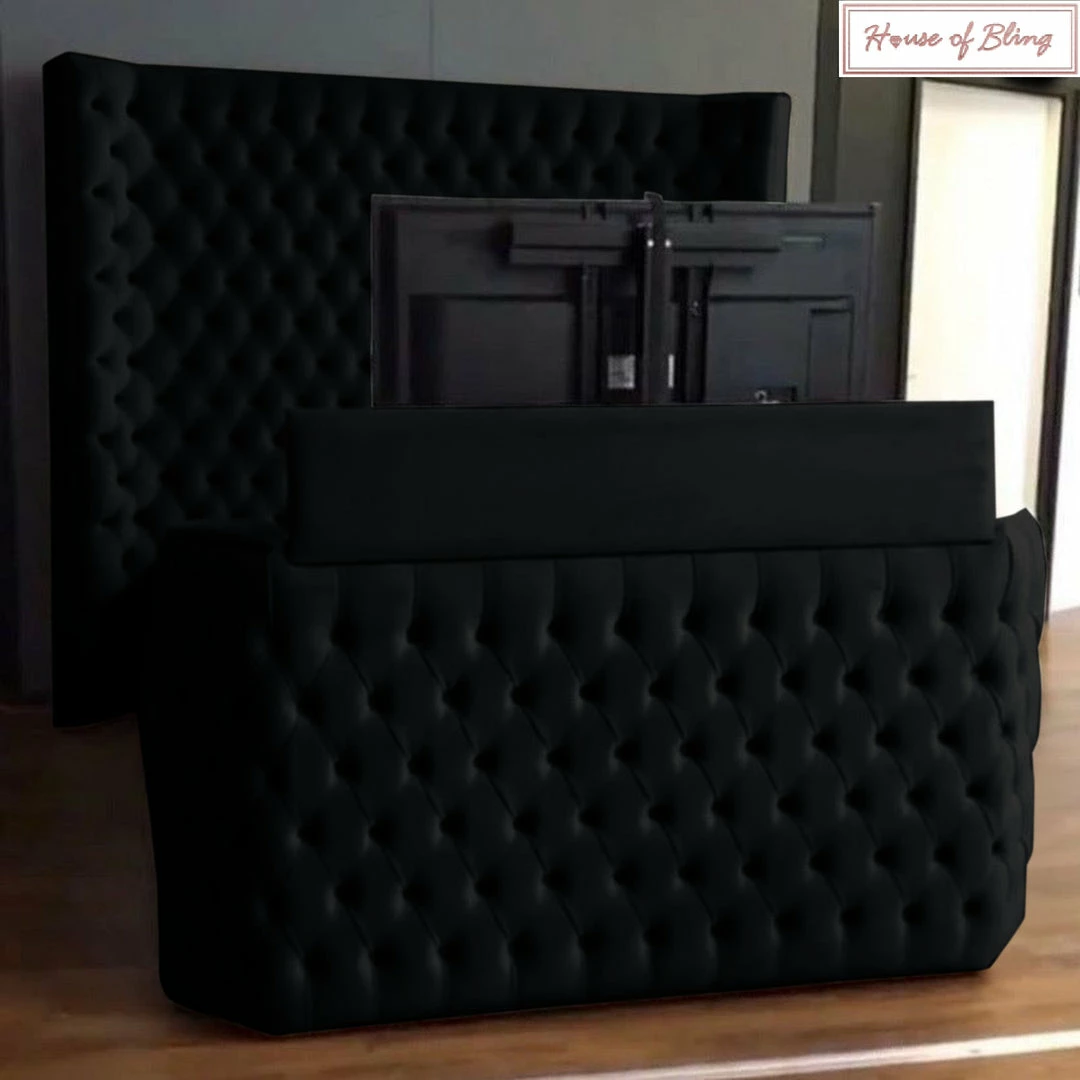 Beds will come with a remotes controlled TV mechanism which will fit TVs up to 54 inches wide on on beds to a king size and 60 inches on a superking and Emperor size bed. Footboard height of 44 inches