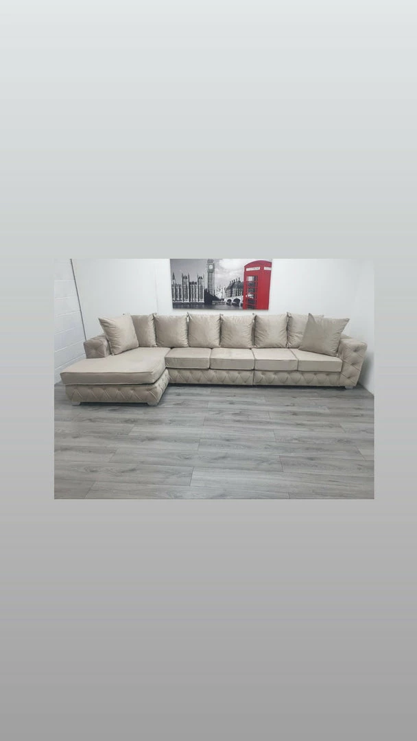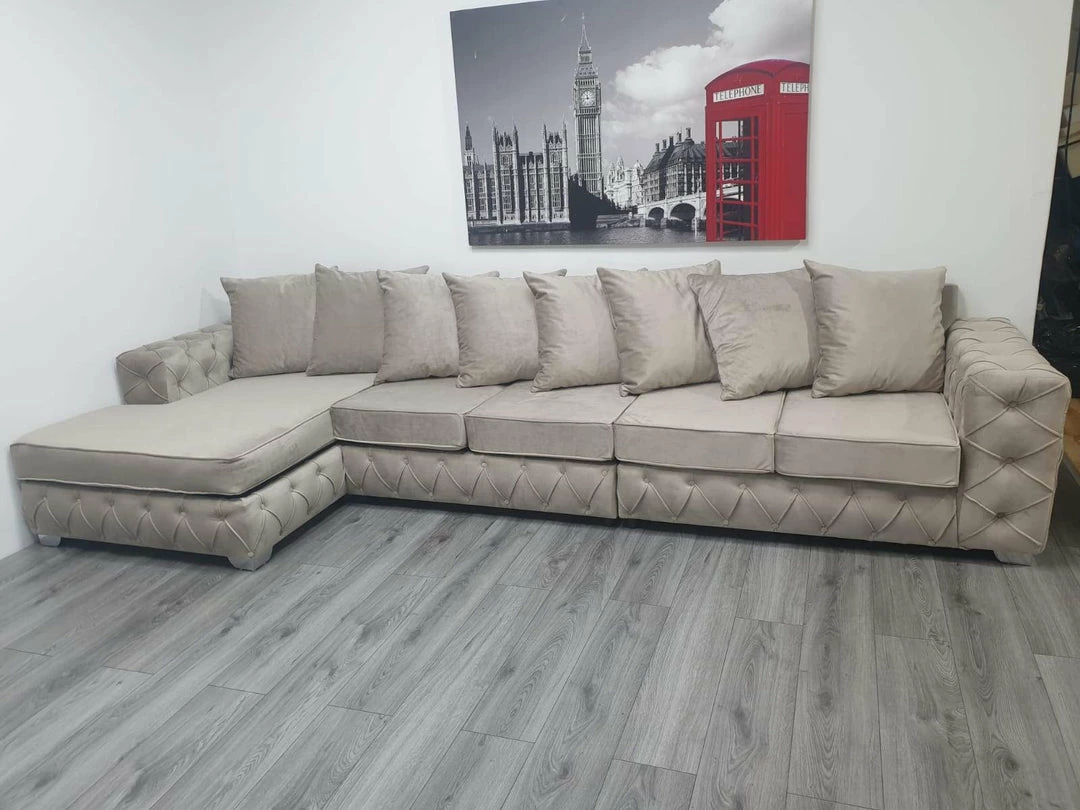 Luxury bespoke Corner Sofa, upholstered in the finest luxury fabrics, and hand manufactured in the UK, using high quality graded foam