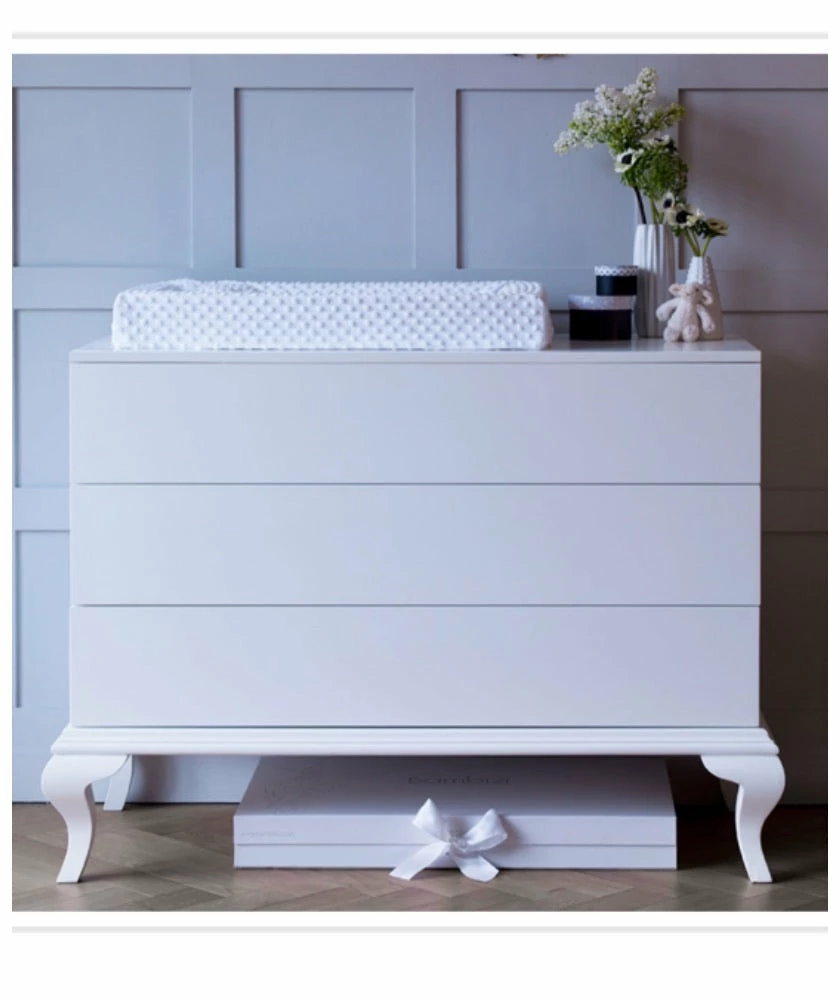 With its streamlined shape and ever-functional design, this luxurious chest of drawers forms part of our classically elegant Moderno range and complements the Moderno Cot Bed beautifully. Exquisitely handmade in solid beech wood, this dresser will provide a stylish storage solution for your baby’s nursery.