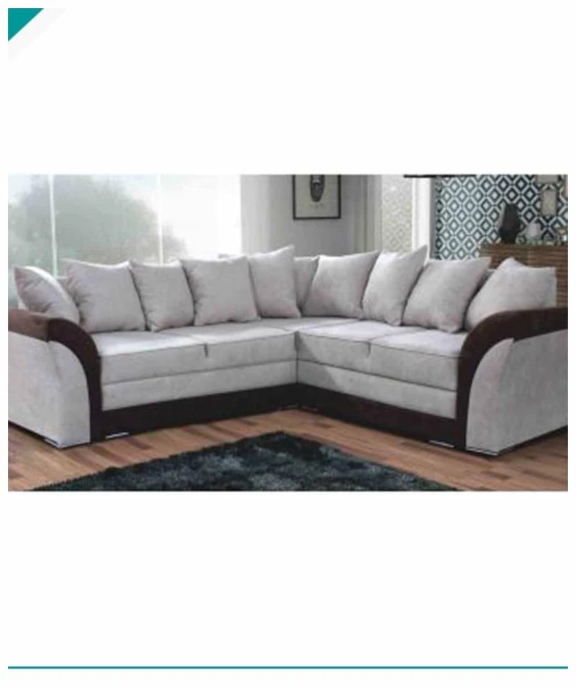 Cream chenille with brown trim, comes with storage and pulls out to be a double bed