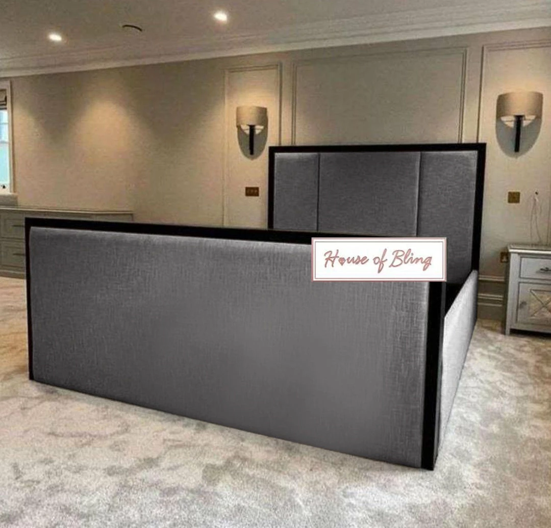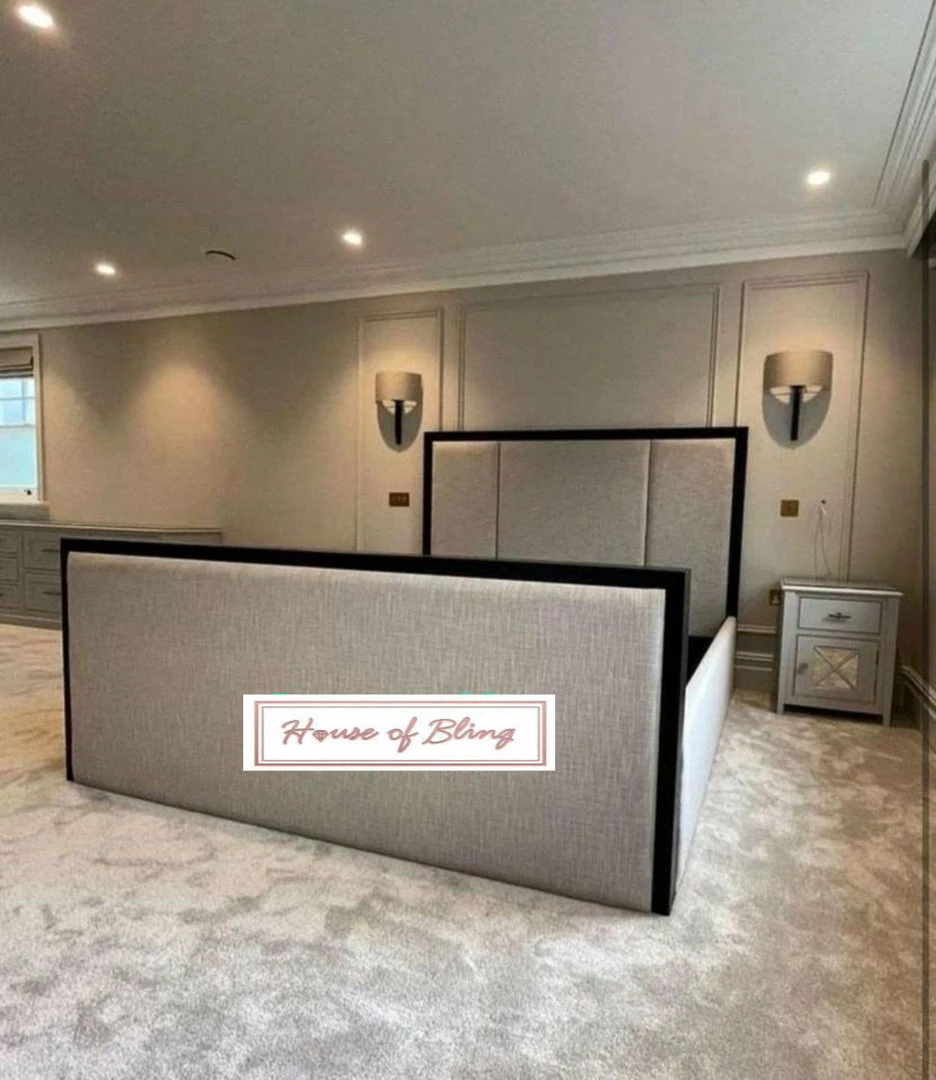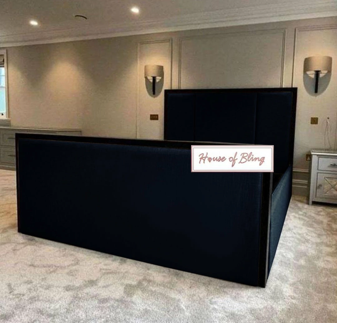 The Bed pictured has been done in a Midnight Black frame with white french velvet