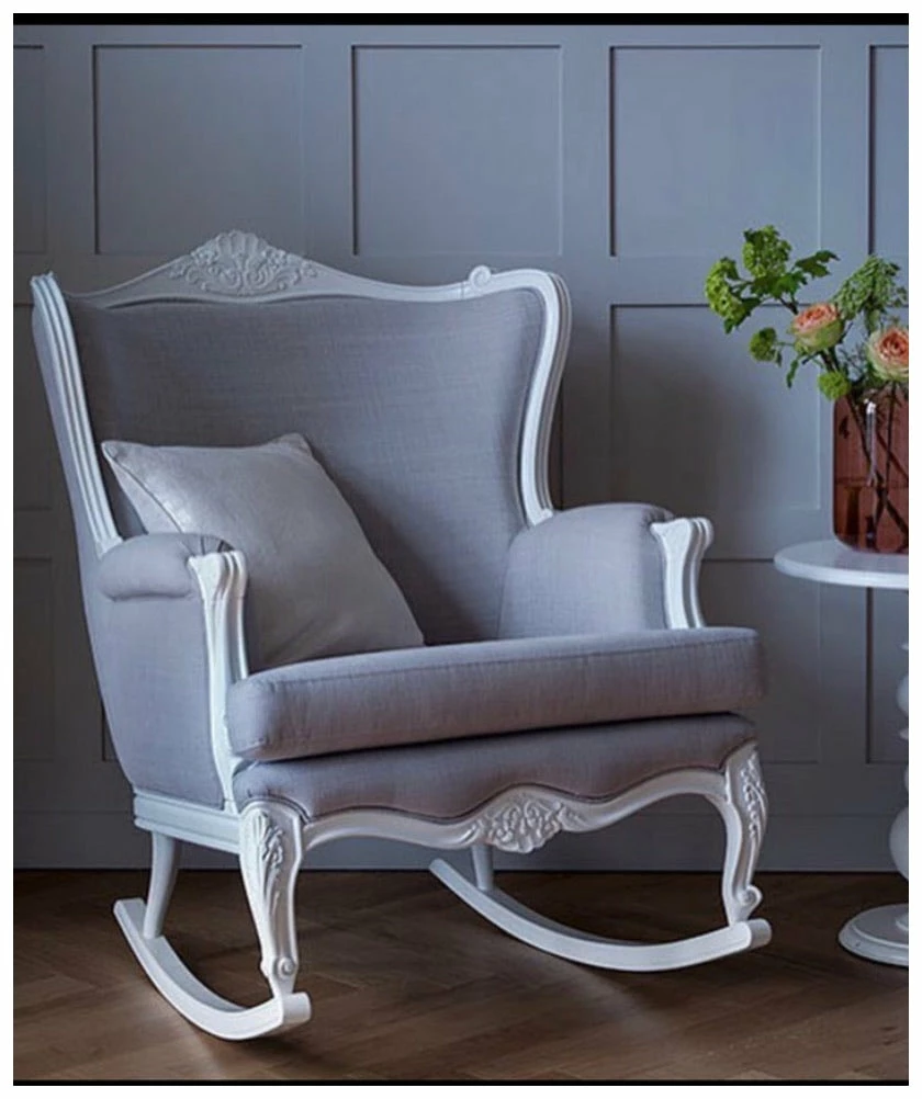 Babies room isn’t complete without a nursery rocking chair, renowned for its ability to engender calm amidst disquiet. Ours is designed in the classic Louis XV style, with beautiful hand-carved features. The soft, durable upholstery and soft motion rocking base make this the perfect nest for night-time feeds and afternoon stories alike.