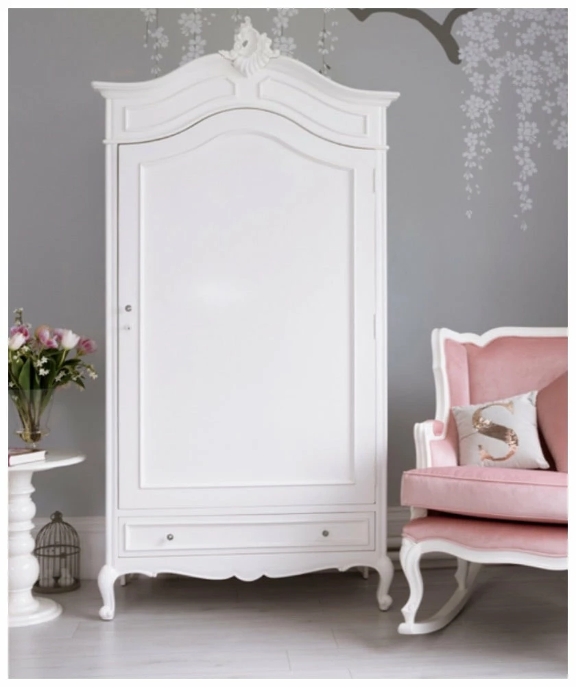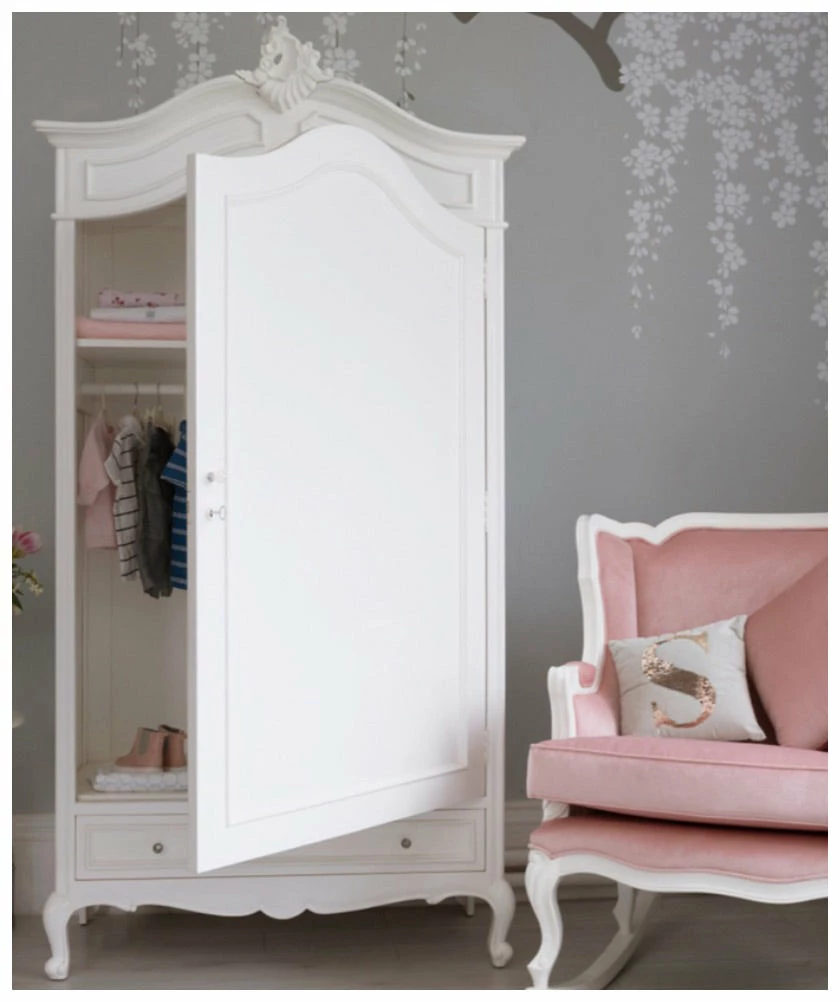 This single-door French armoire is hand made from solid mahogany wood. It is the ultimate in pared back style, taking inspiration from French Provencal homes.