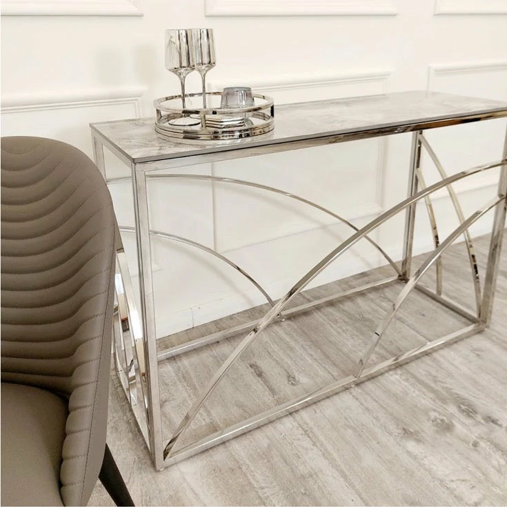 House Of Bling Furniture Boutique Oxford Console Table Chrome With Ash Stone Top