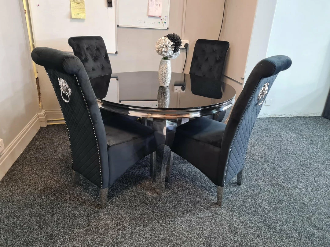 House Of Bling Furniture Boutique Oxford Round Glass Table With Lion Knock Chairs