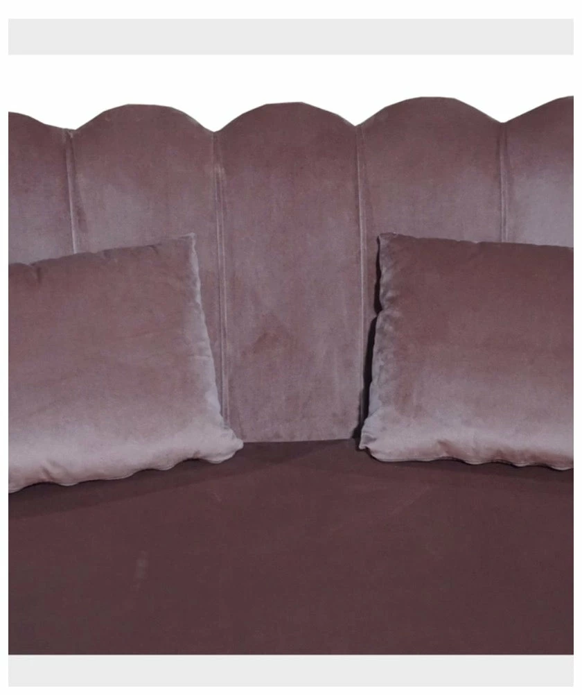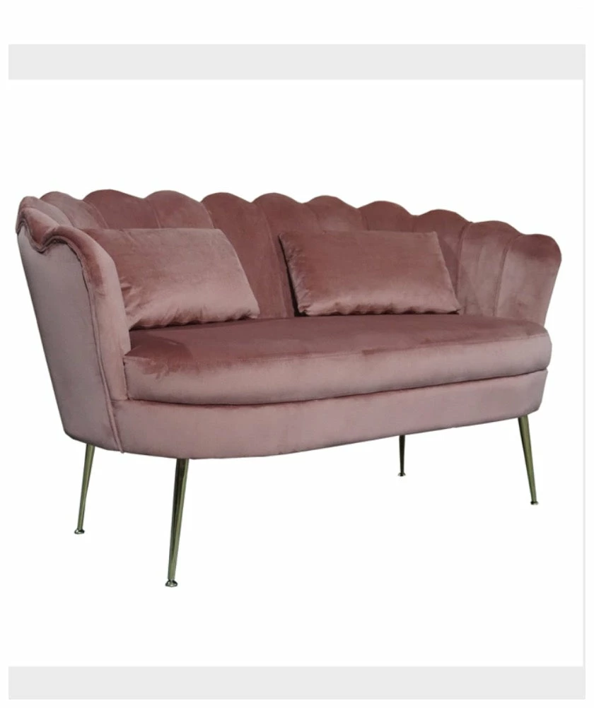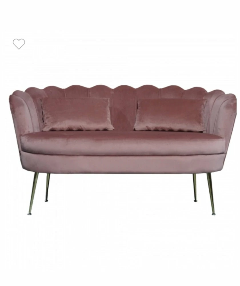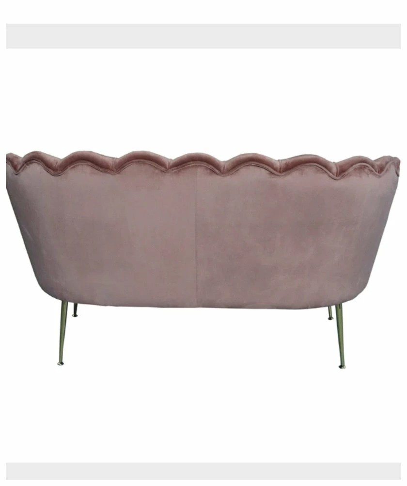 This velvet sofa is the perfect addition to your home. With its scallop shaped backseat and slim metal gold legs gives a vintage but elegant accent to your décor. The extra padded cushion and firm material are comfortable and ideal to relax on for long a period. The trendy dusky pink colour is a popular scheme for modern homeowners. With the beautiful design and reasonable dimensions it can be used in a dressing room, bedroom, hallway or be the perfect finish for your living room.