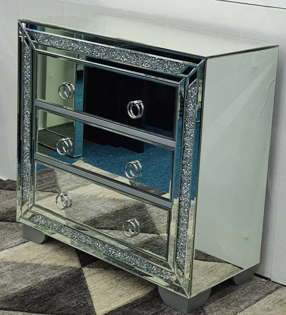 stunning mirrored crushed diamond chest of drawers