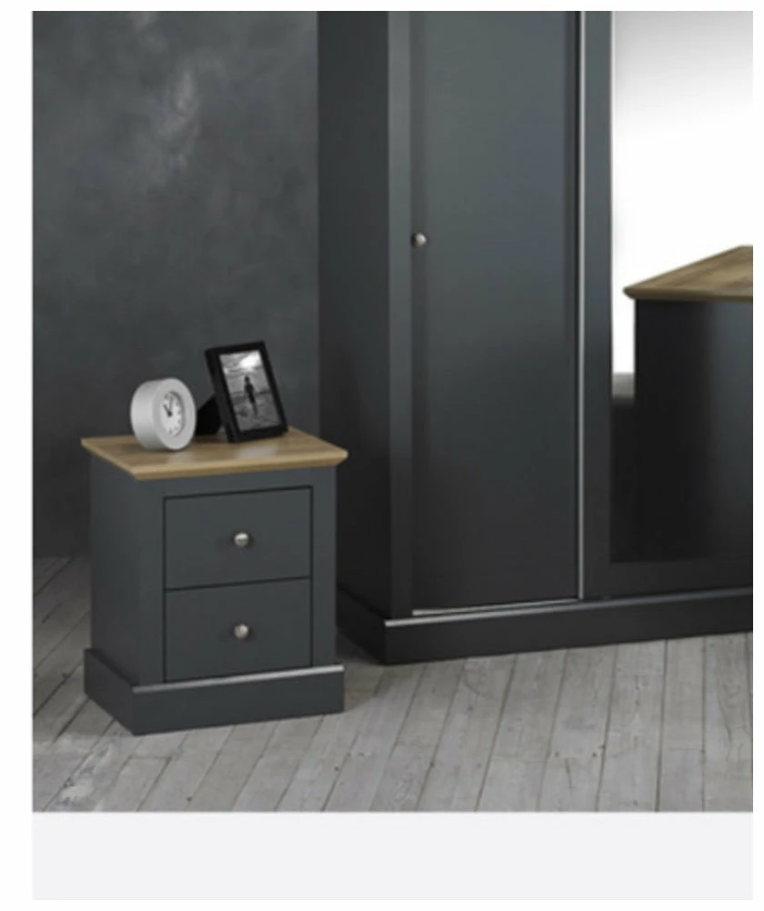 | W 459 mm X H 552 mm X D 395 mm Plymouth bedside drawers in charcoal and oak |