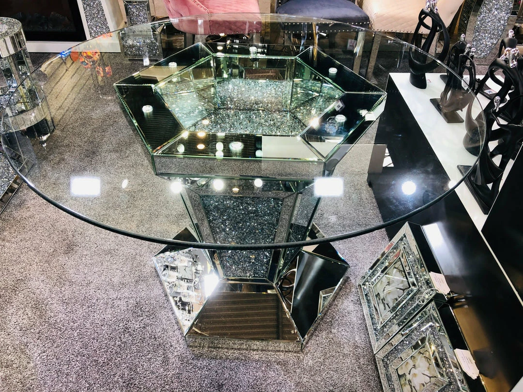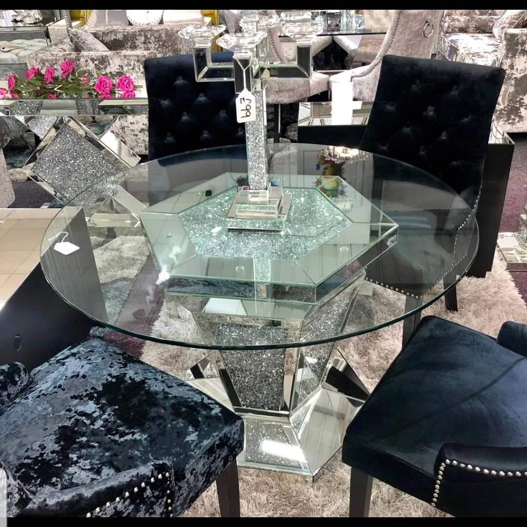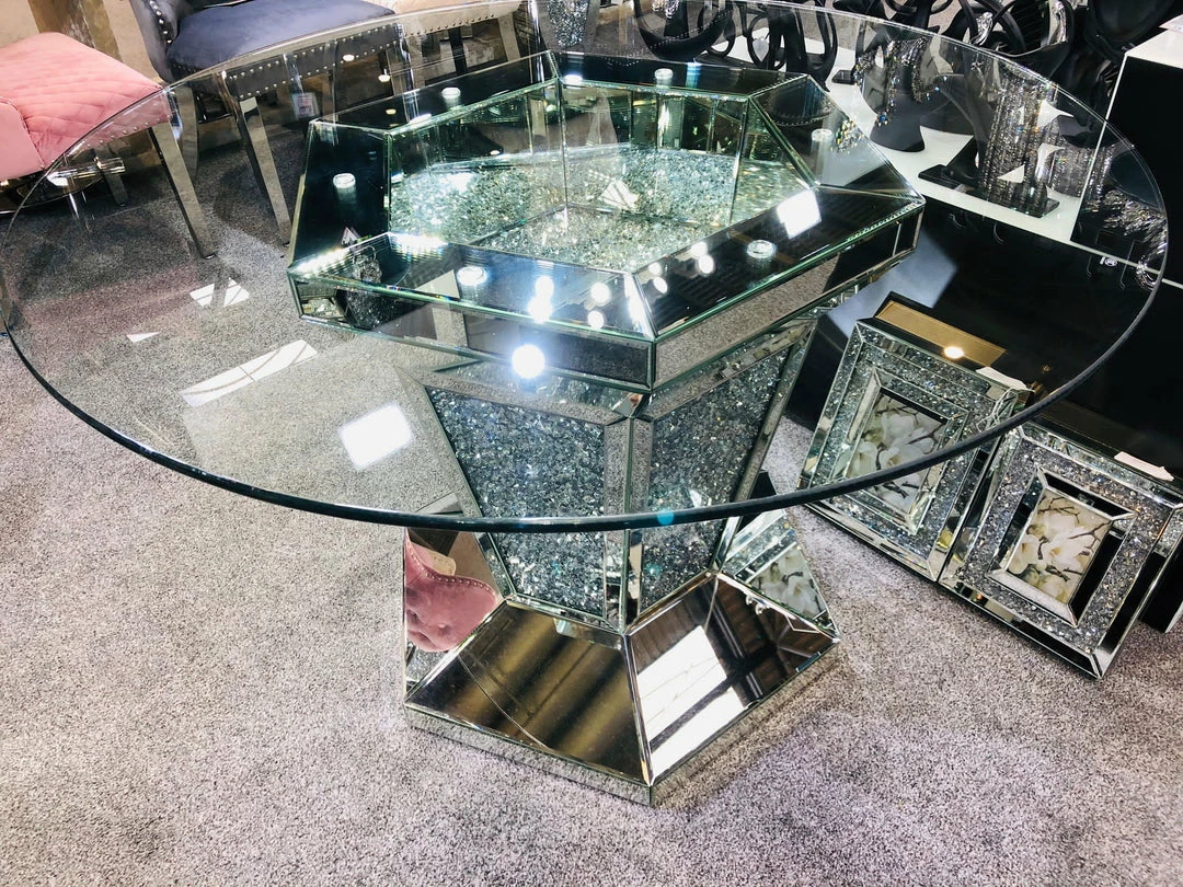 Round crushed diamond mirrored table