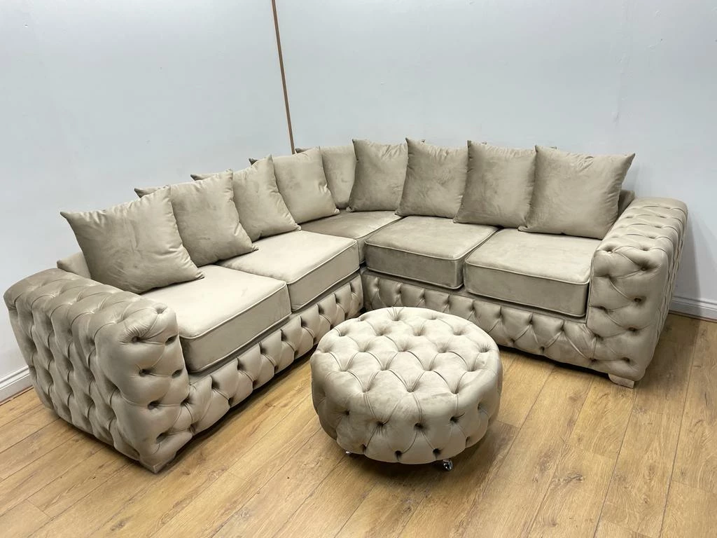 Luxury bespoke Corner Sofa, upholstered in the finest luxury fabrics, and hand manufactured in the UK, using high quality graded foam