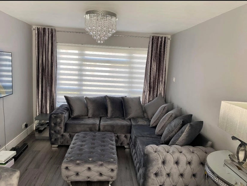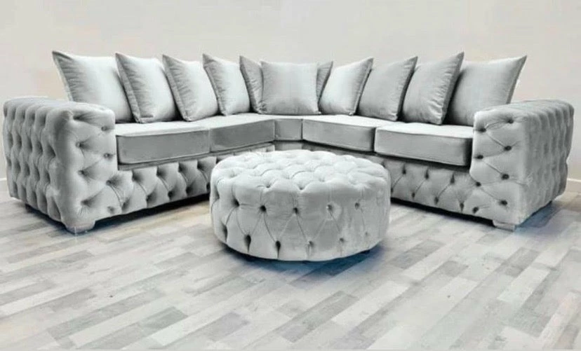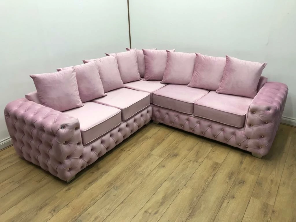 Luxury bespoke Corner Sofa, upholstered in the finest luxury fabrics, and hand manufactured in the UK, using high quality graded foam