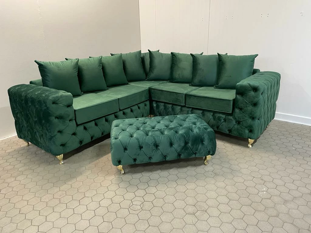 Luxury bespoke Corner Sofa, upholstered in the finest luxury fabrics, and hand manufactured in the UK, using high quality graded foam