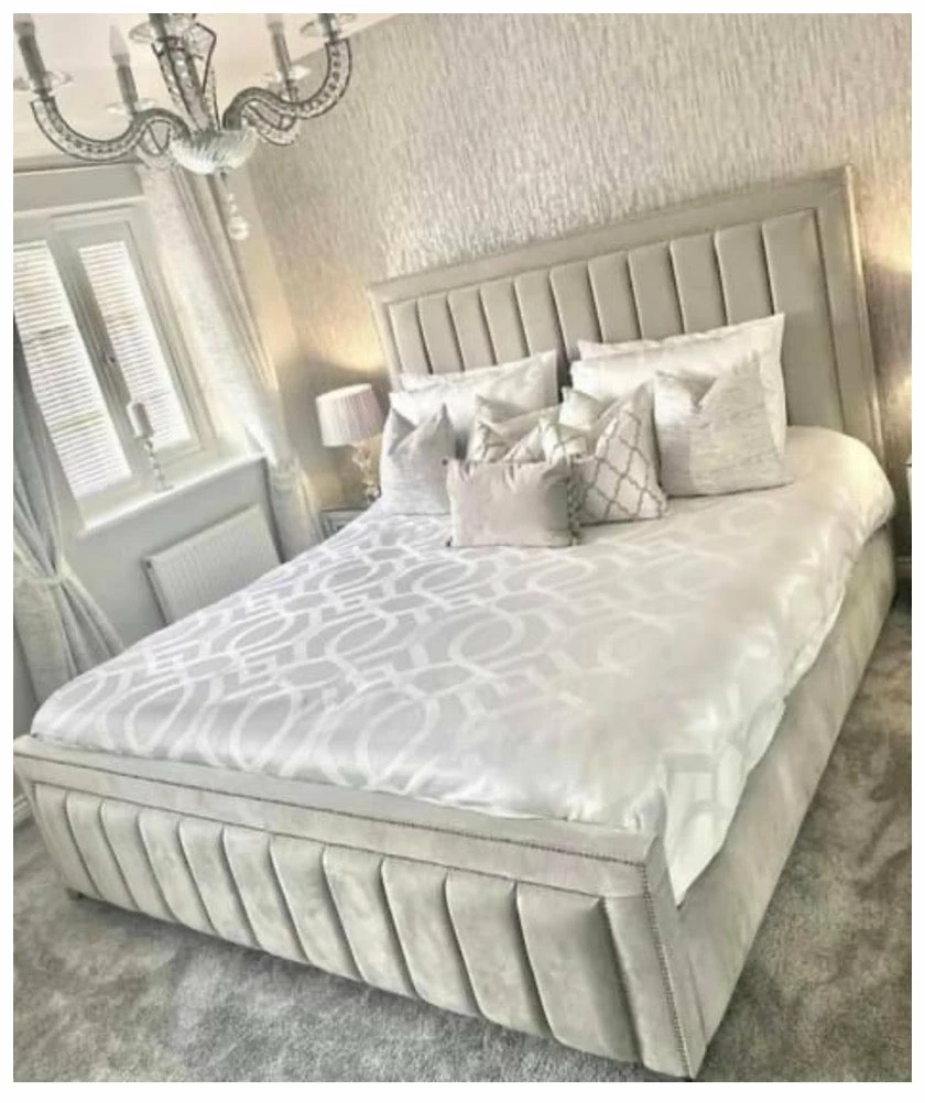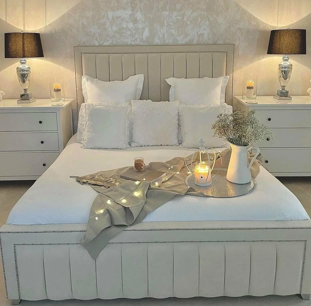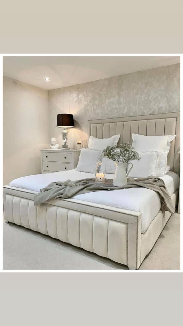 Double beeded lined bed with a bumper footboard and headboard