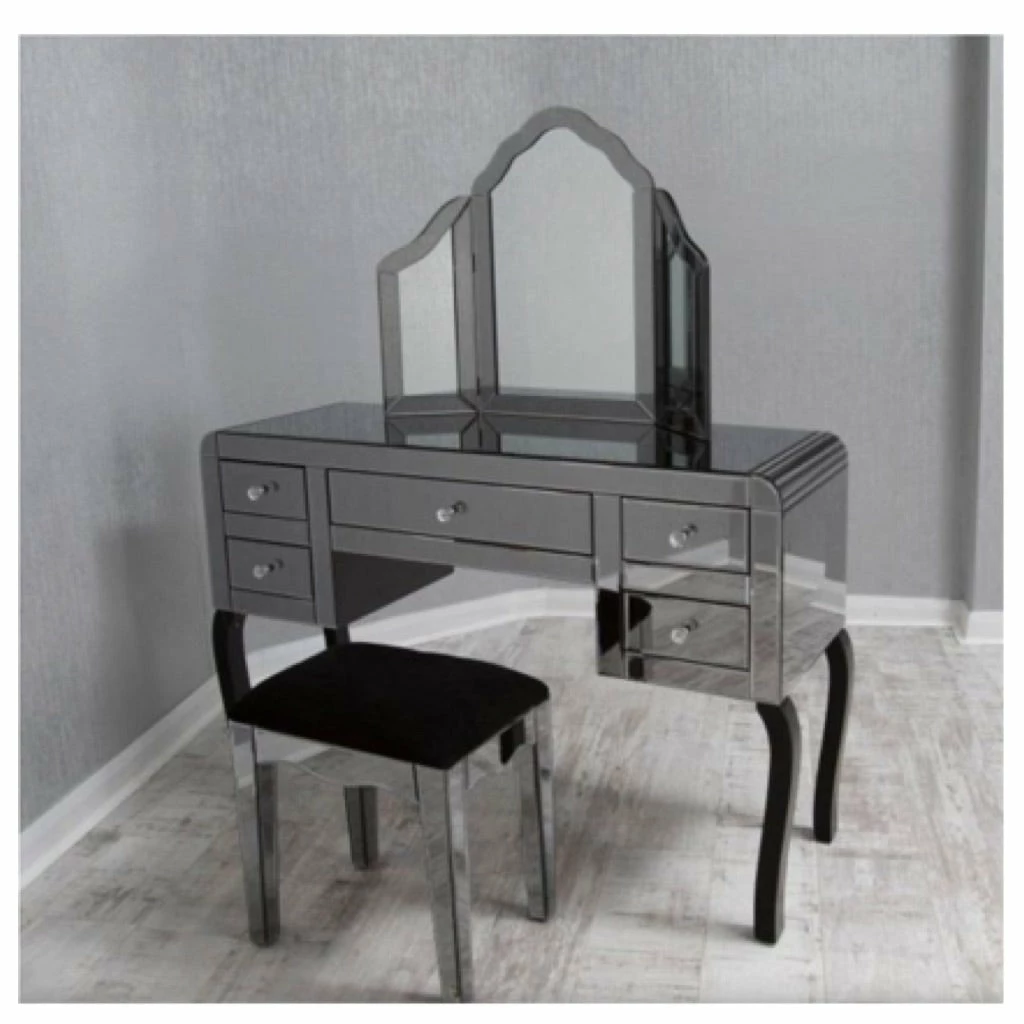 The Smoked Mirrored Dressing table can also double up as a console table with its elegant design and modern styling it would look great in a hallway and/or living room. The table can be purchased with the smoked stool and smoked dressing table mirror to make a complete dressing table set for your bedroom