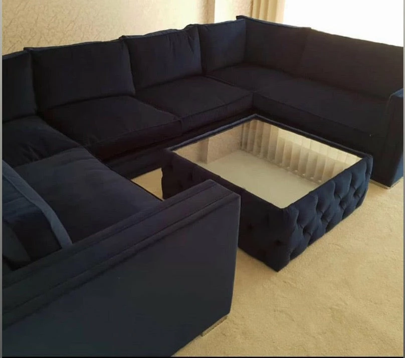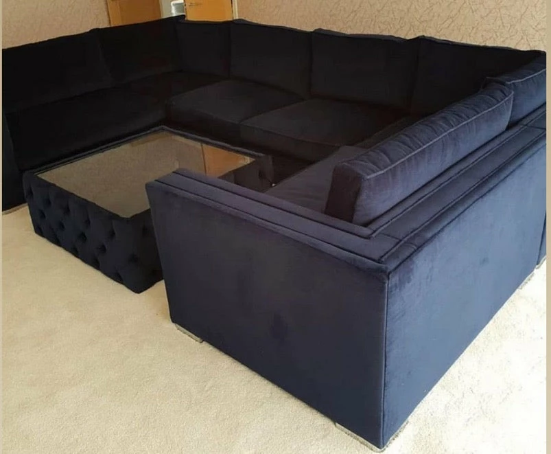 Luxury bespoke U shape sofa, upholstered in the finest luxury fabrics, and hand manufactured in the UK, using high quality graded foam