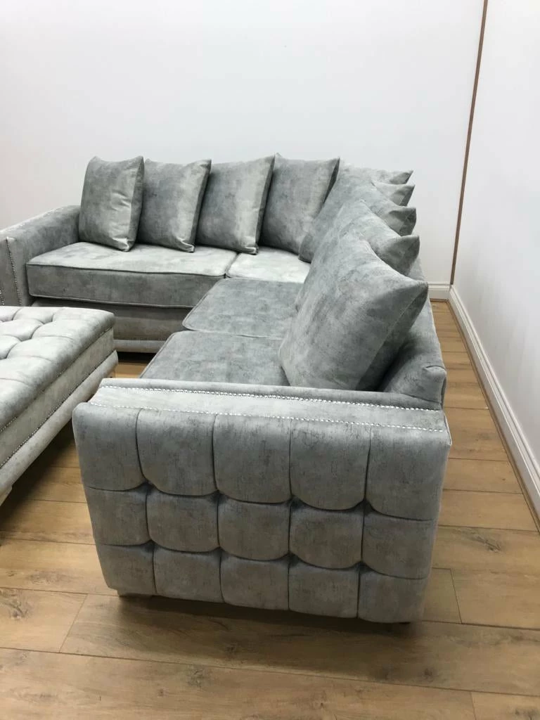 Luxury bespoke Corner Sofa, upholstered in the finest luxury fabrics, and hand manufactured in the UK, using high quality graded foam