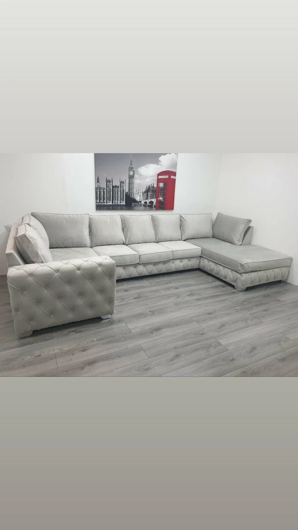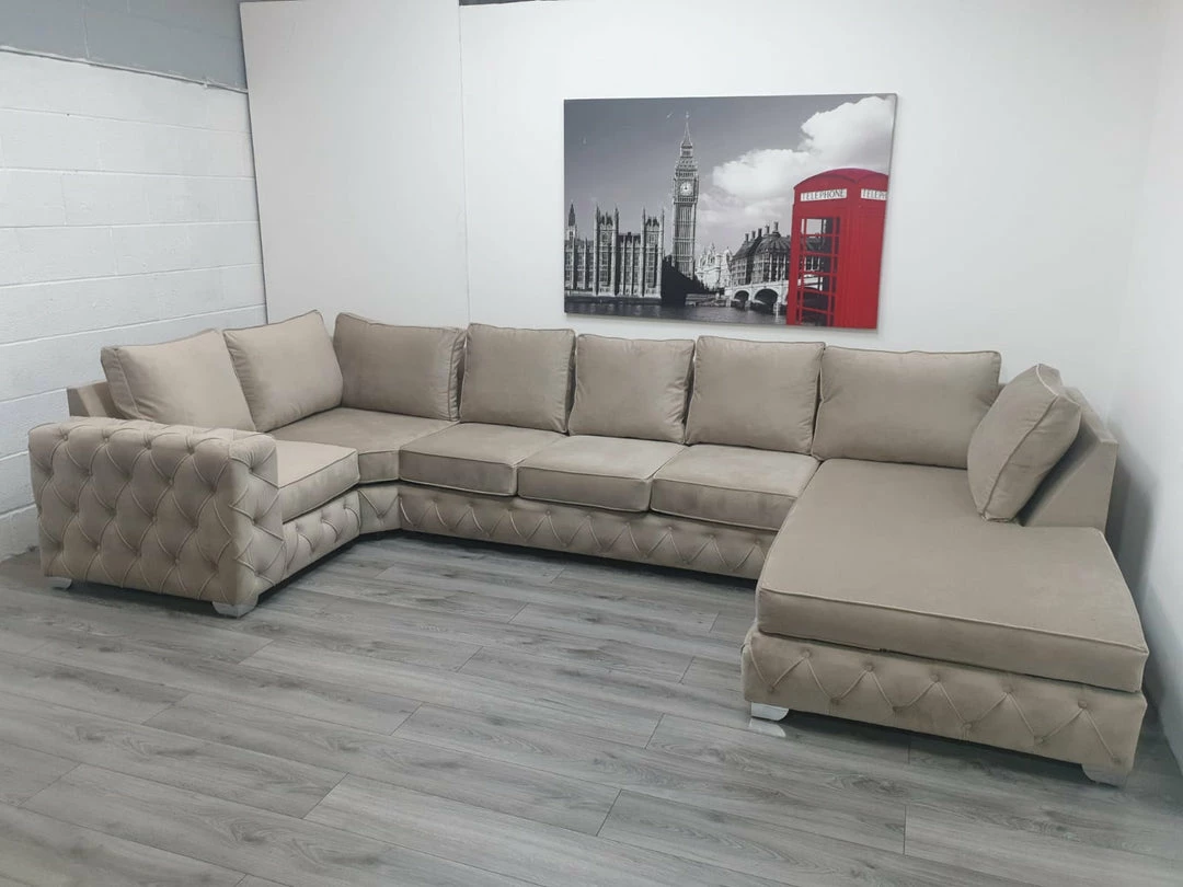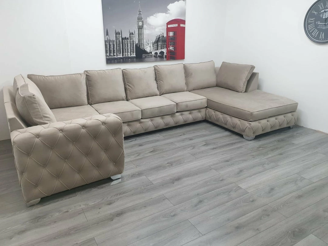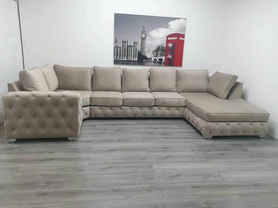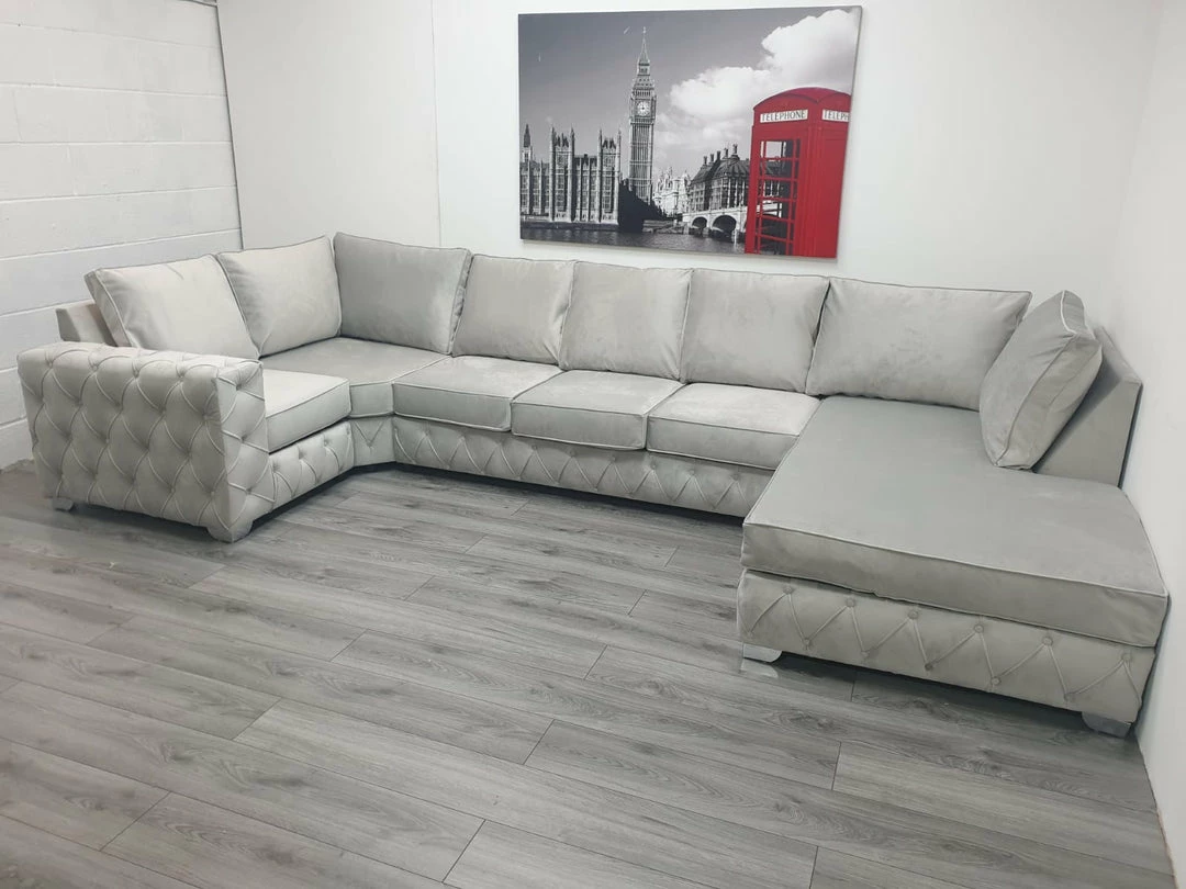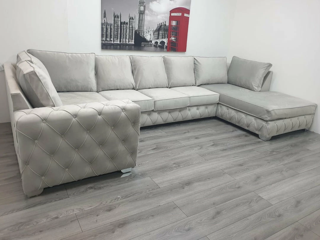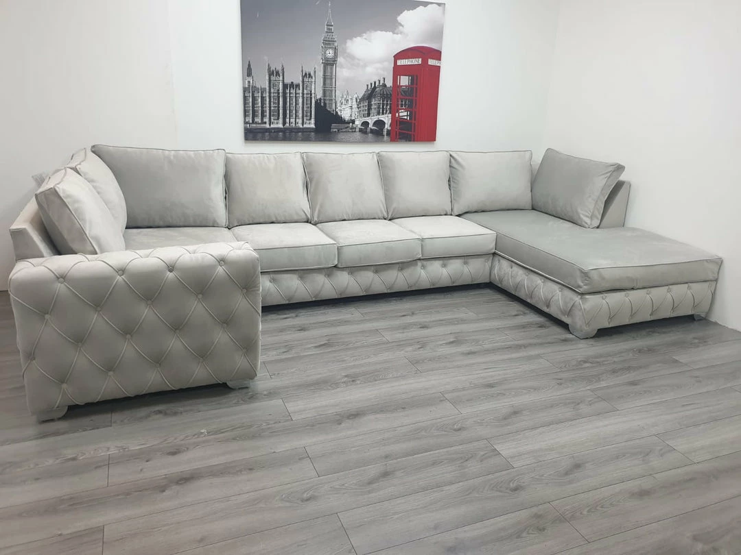 Luxury bespoke U shape sofa, upholstered in the finest luxury fabrics, and hand manufactured in the UK, using high quality graded foam